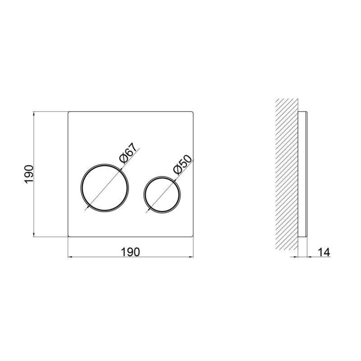 Габаритні розміри виробу (ШхГхВ), мм 190х13х190