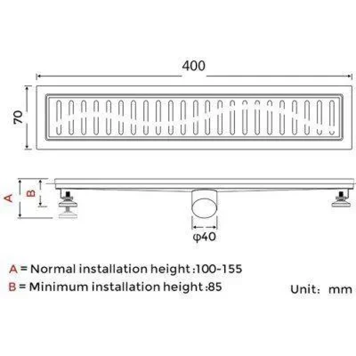 Трап для душу GAPPO G84007-3, 70х400 мм, нержавіюча сталь