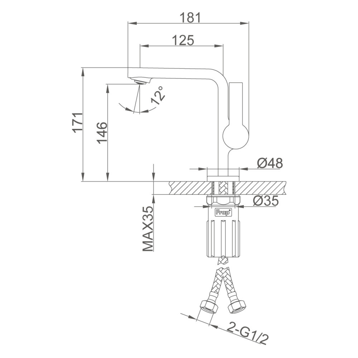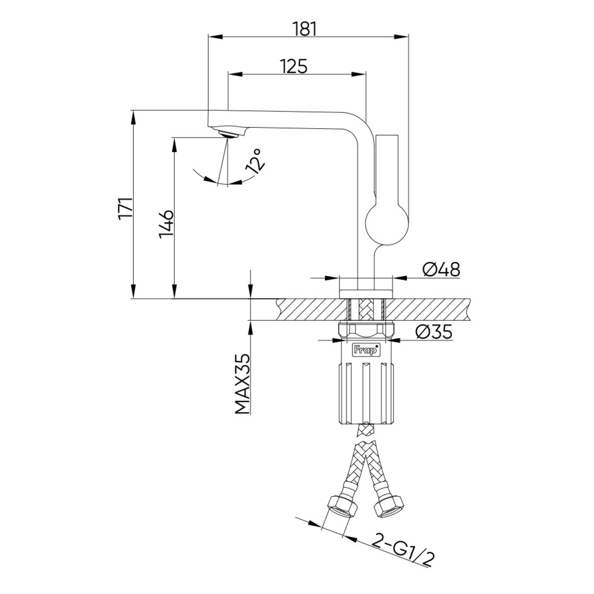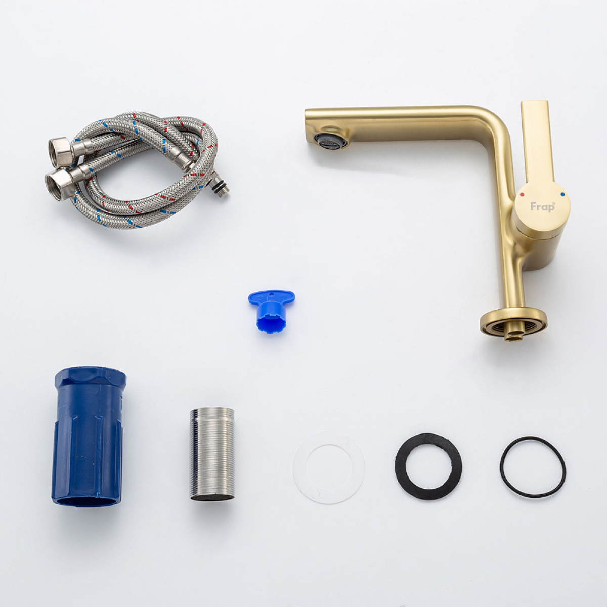 F1088-3 умивальник одноваж. литий вилив лат. корпус гайка Ø35 (сатин золотий) {10/1}