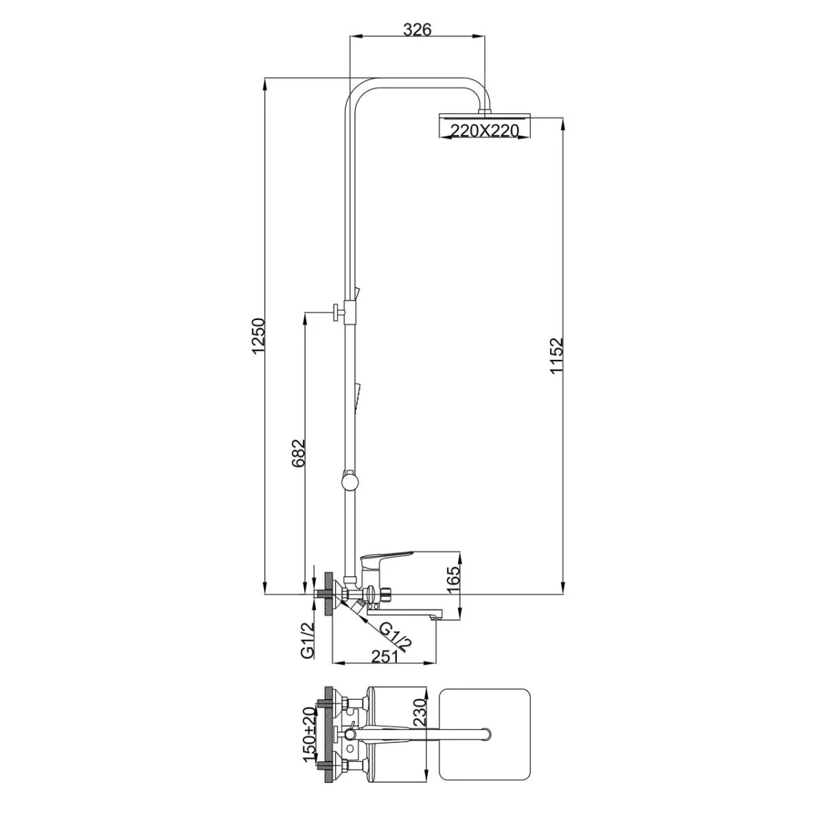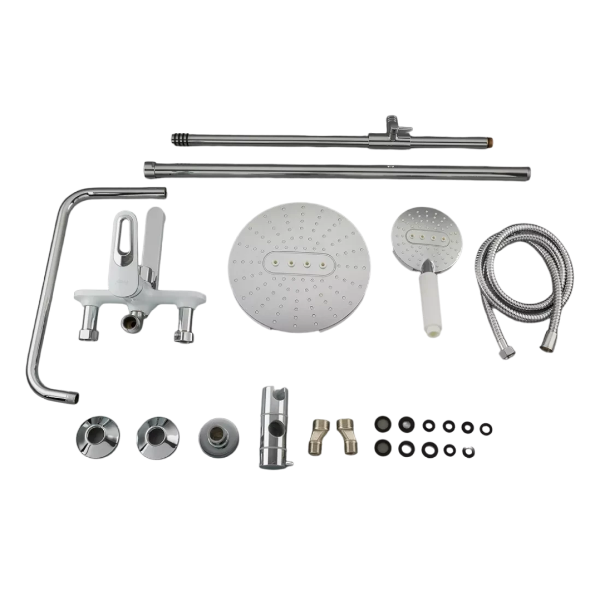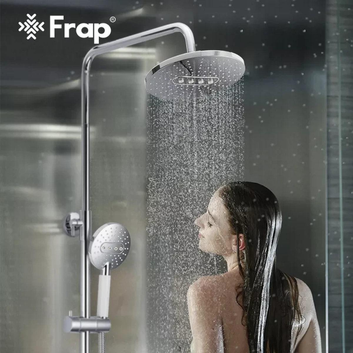 Душева система Frap F2449, поворотний вилив - перемикач на лійку, 3 режими, білий/хром