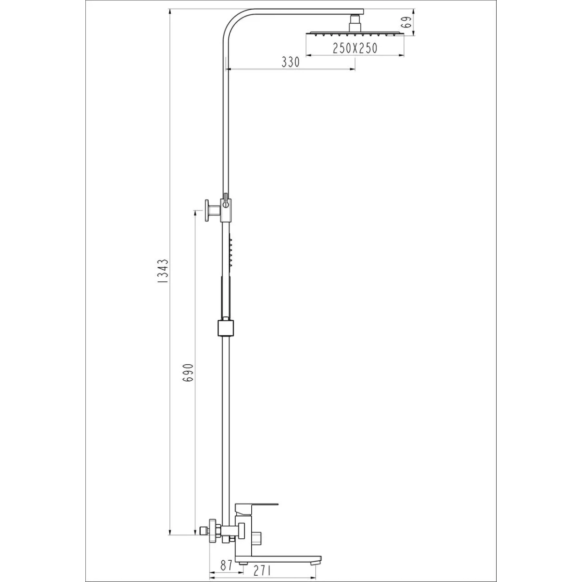 Душева система Frap F24802, поворотний вилив - перемикач на лійку, 1 режим, нержавіюча сталь