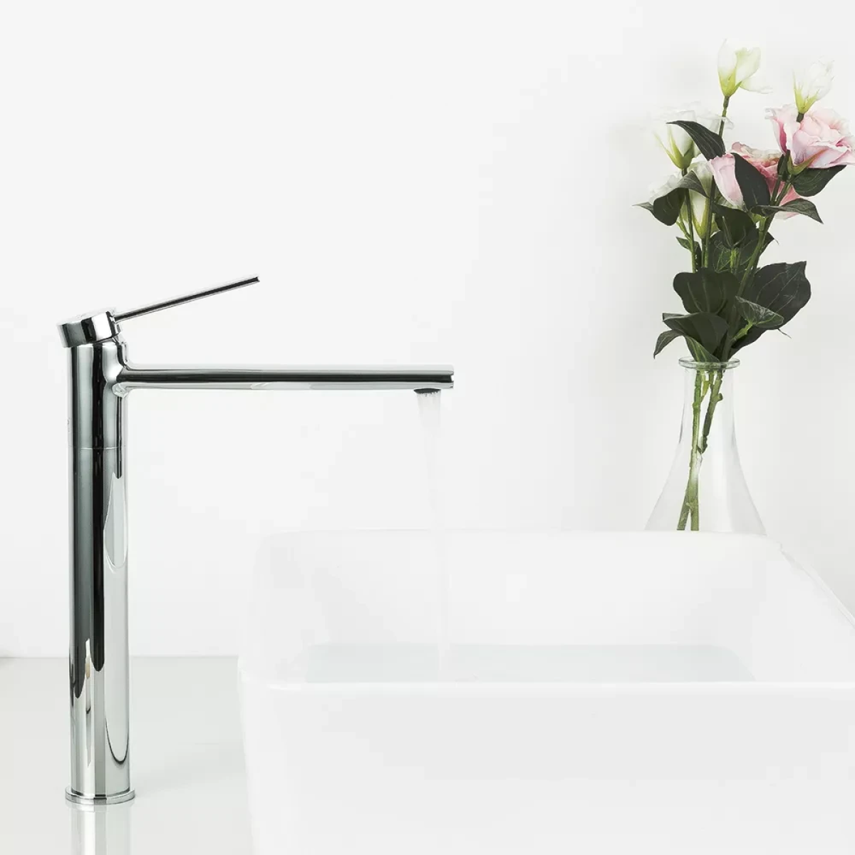 F1067-2 умивальник високий одноваж. литий вилив лат. корпус гайка Ø25 (хром) {10}