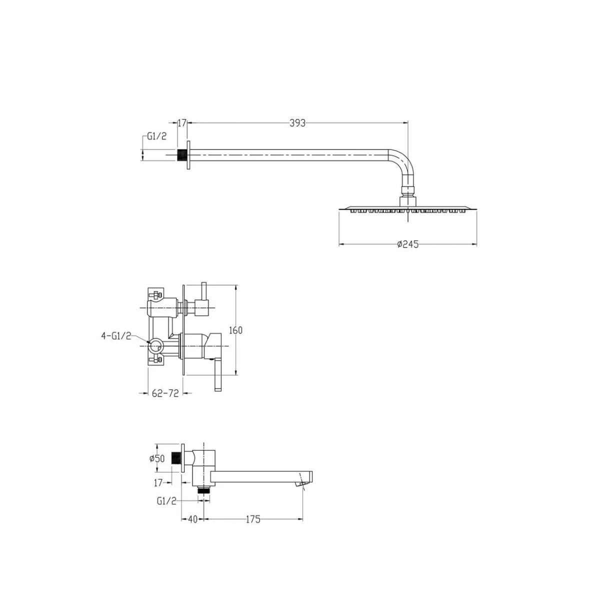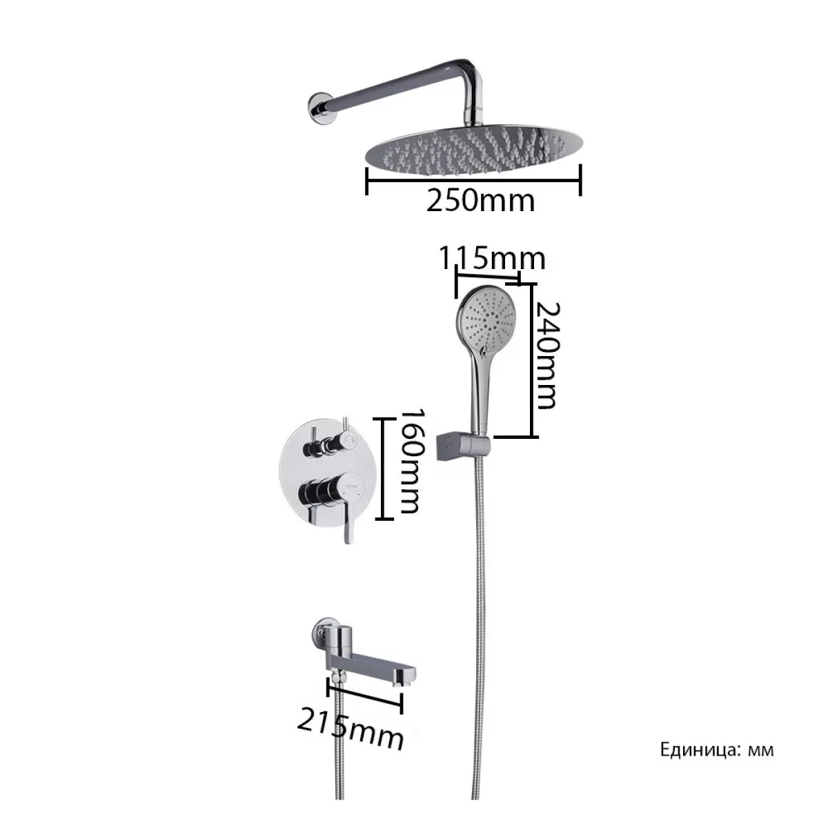 Вбудована душова система GAPPO G7104, вилив - перемикач на лійку, 3-функції, хром