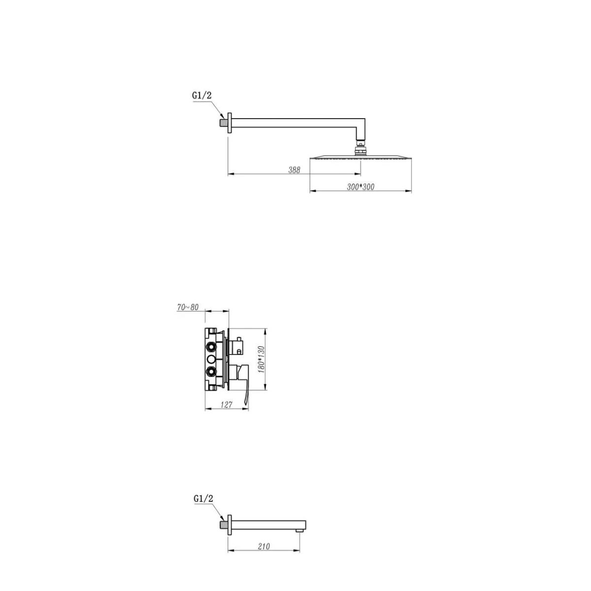 Вбудована душова система GAPPO G7102, вилив - перемикач на лійку, 3-функції, хром