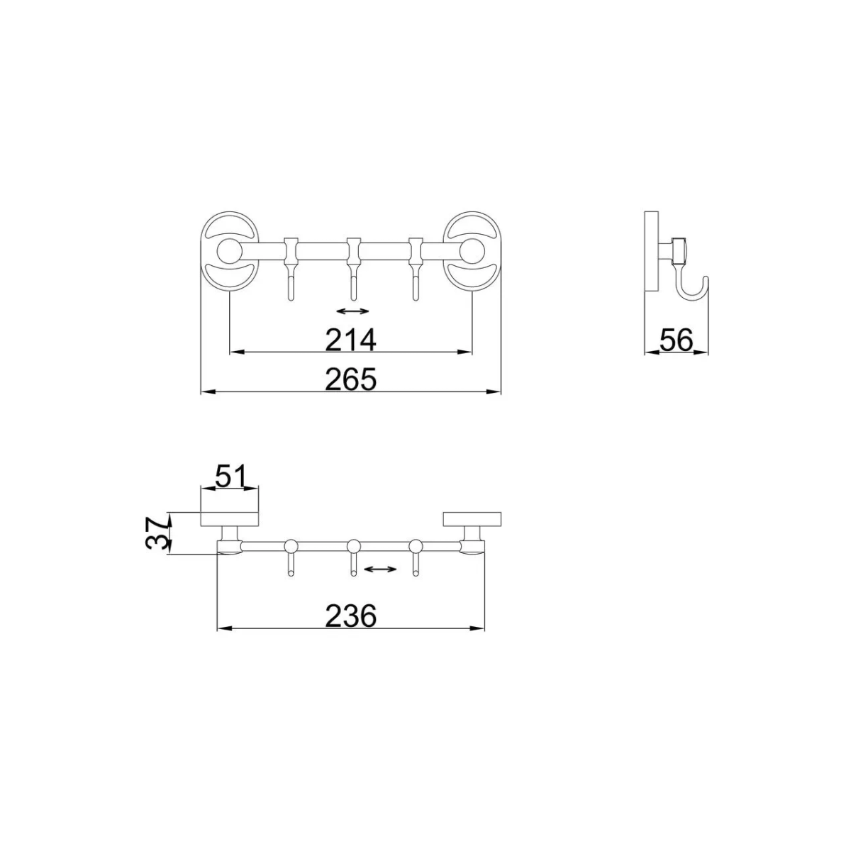 Вішалка Frap F1915-3 на 3 рухомих гачка 240 мм, хром