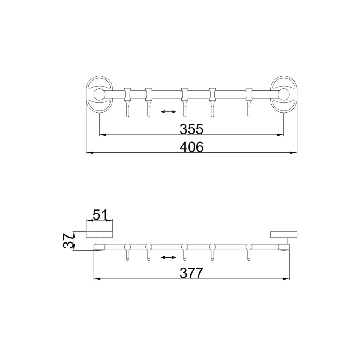 Вішалка Frap F1915-5 на 5 рухомих гачків 380 мм, хром