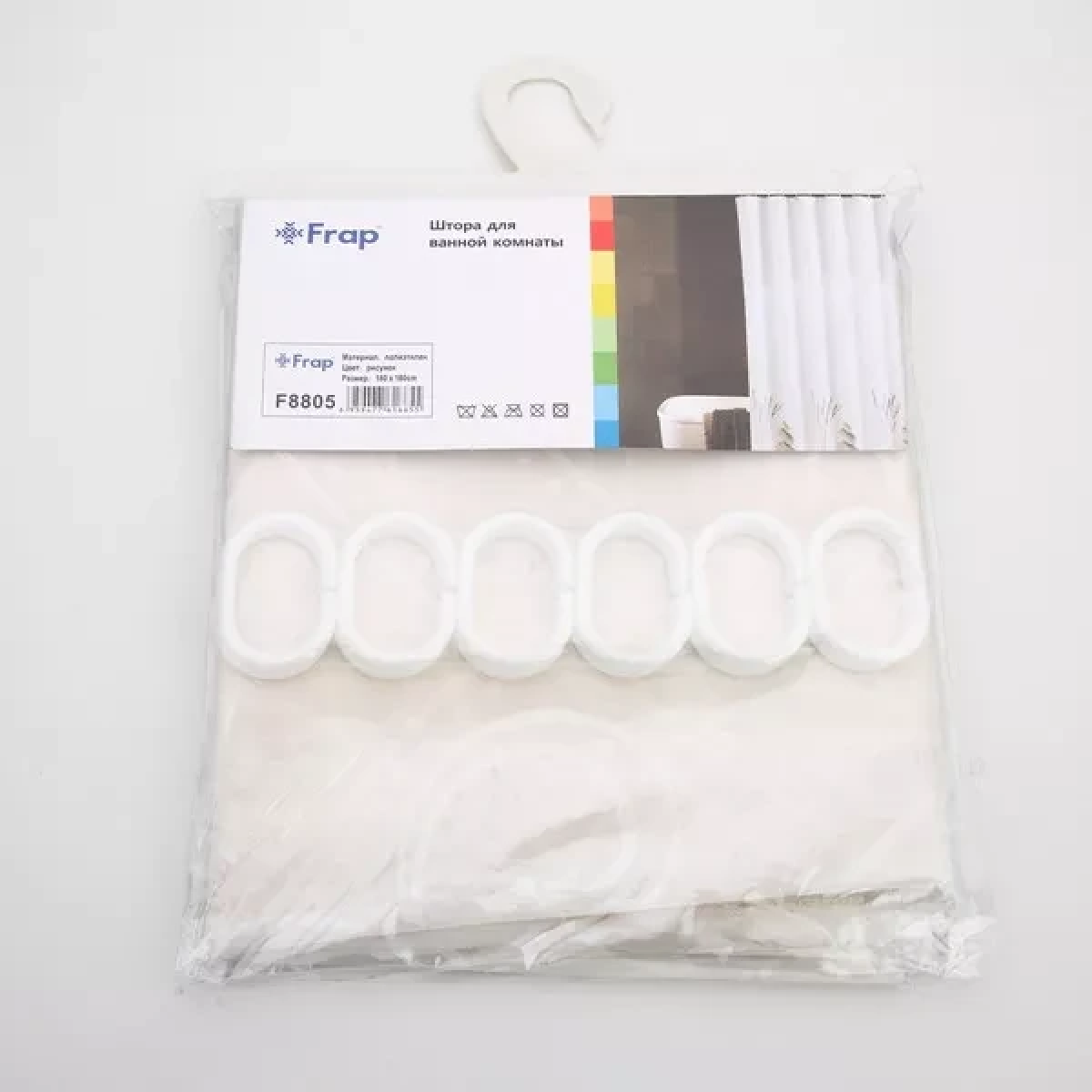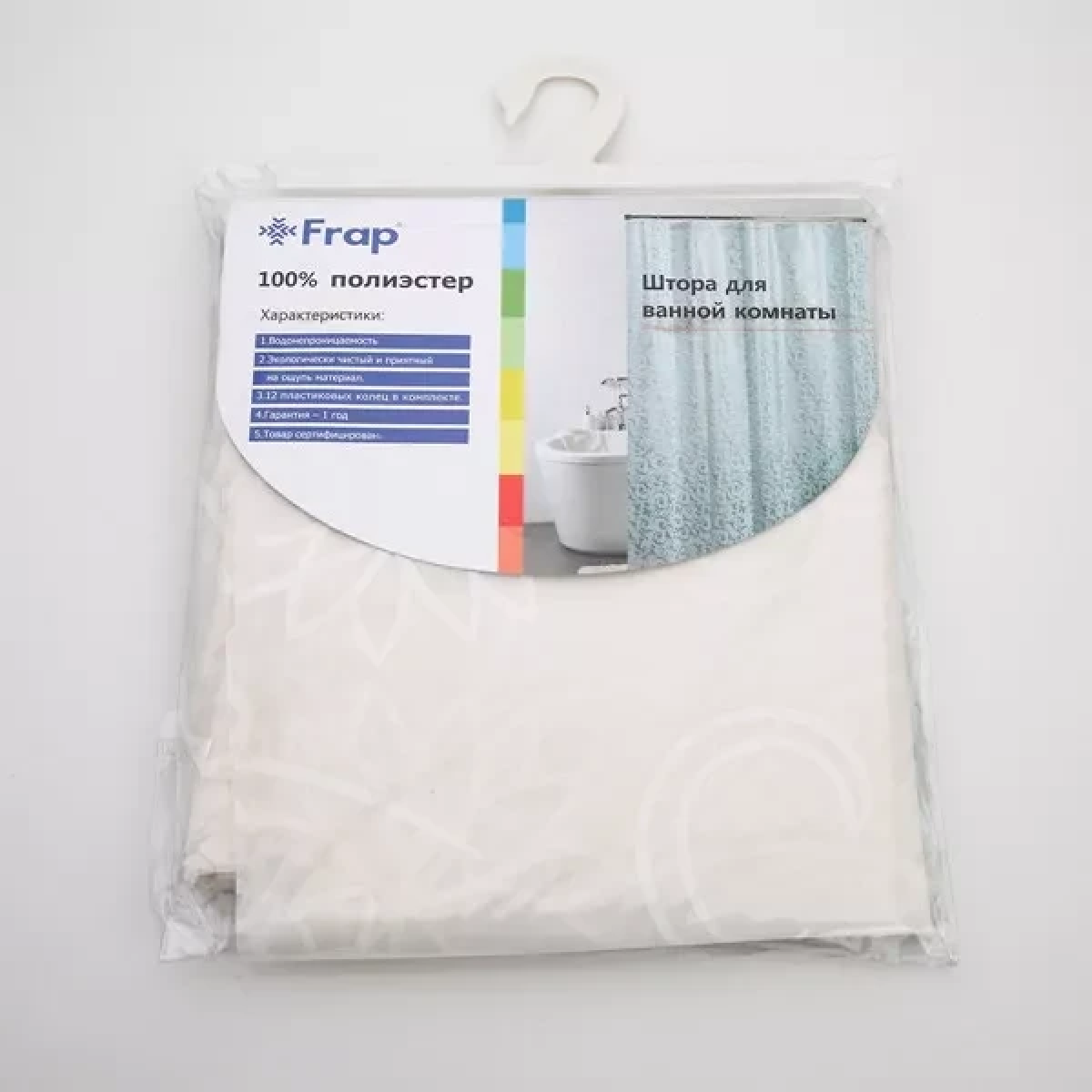 Шторка для ванної і душа Frap F8805, поліетилен, 180 x180 см, білий/серий