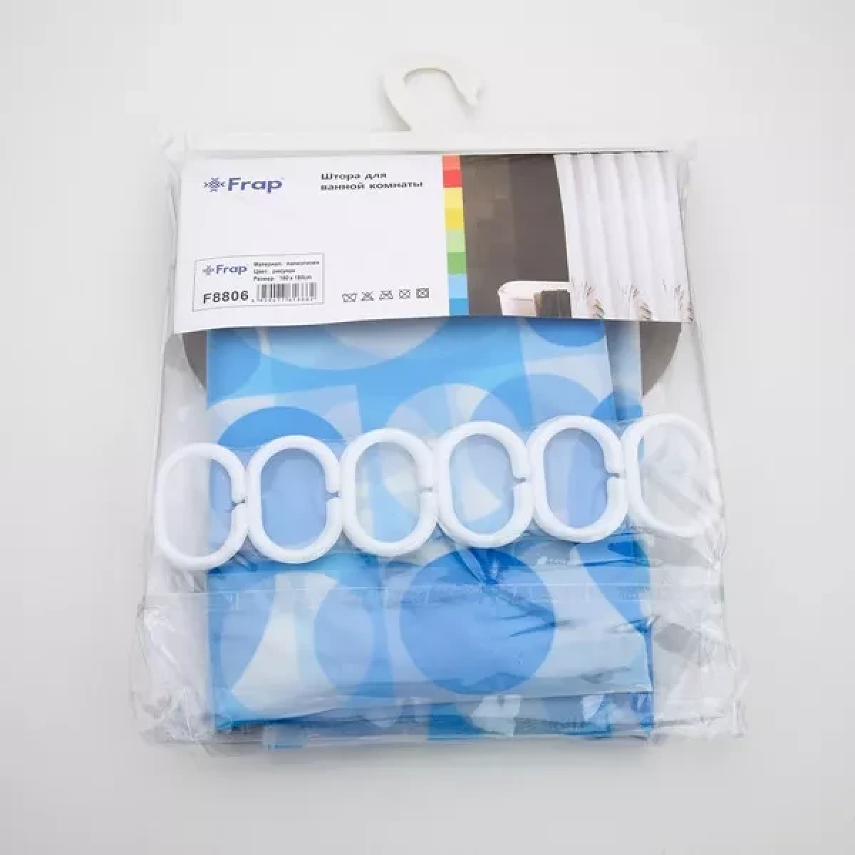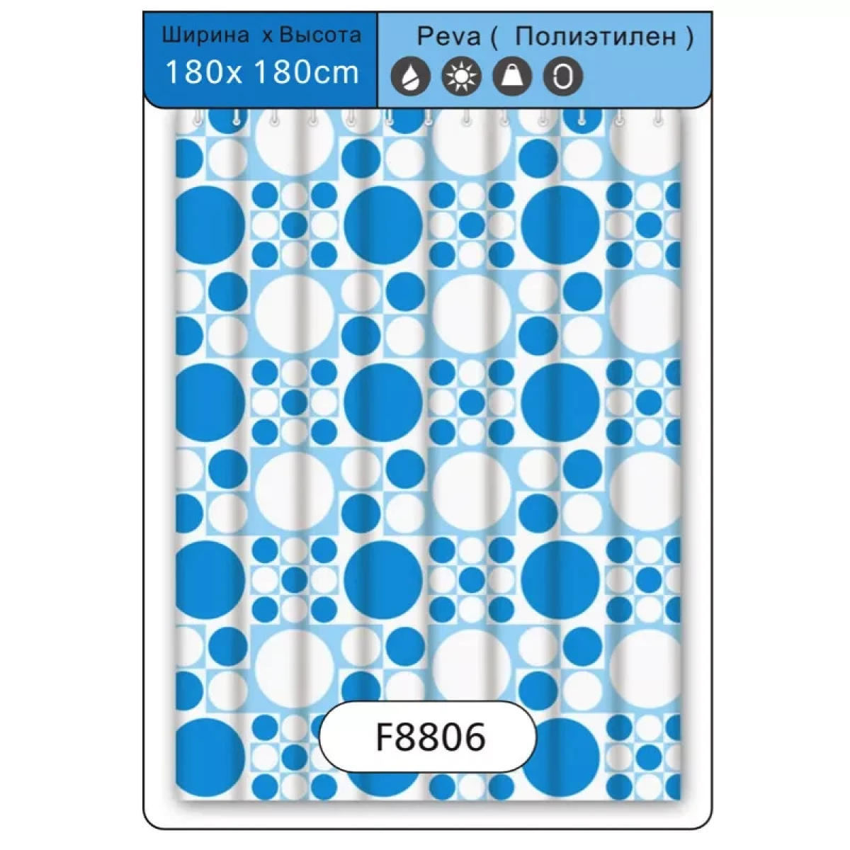 Шторка для ванної та душа Frap F8806, поліетилен, 180х180 см, блакитний