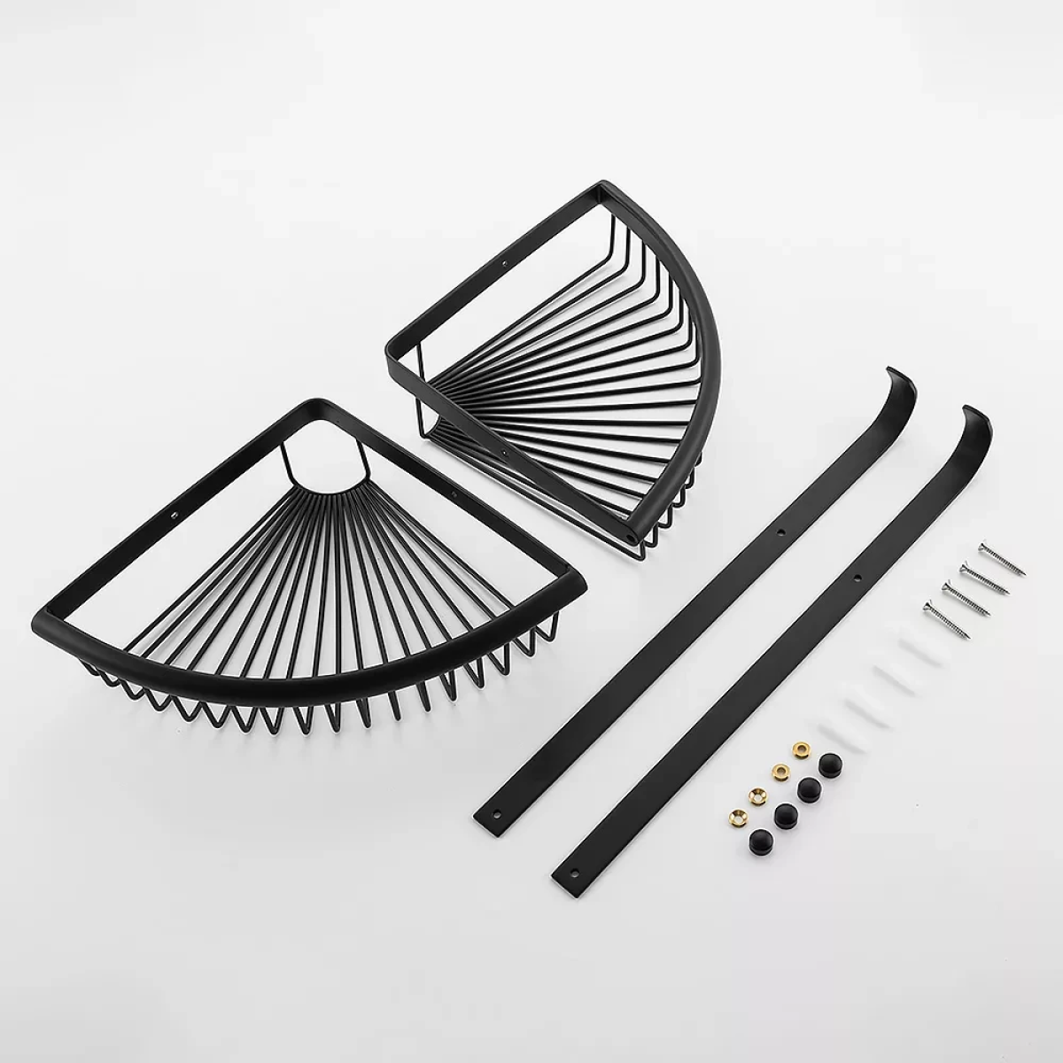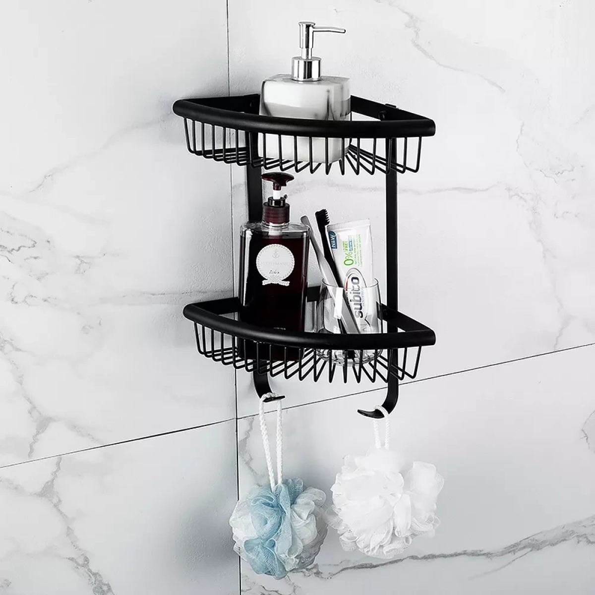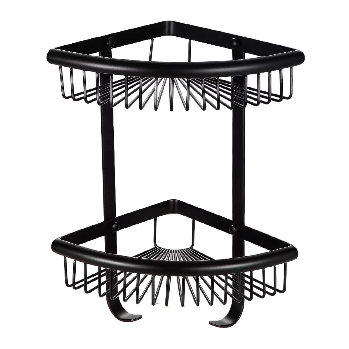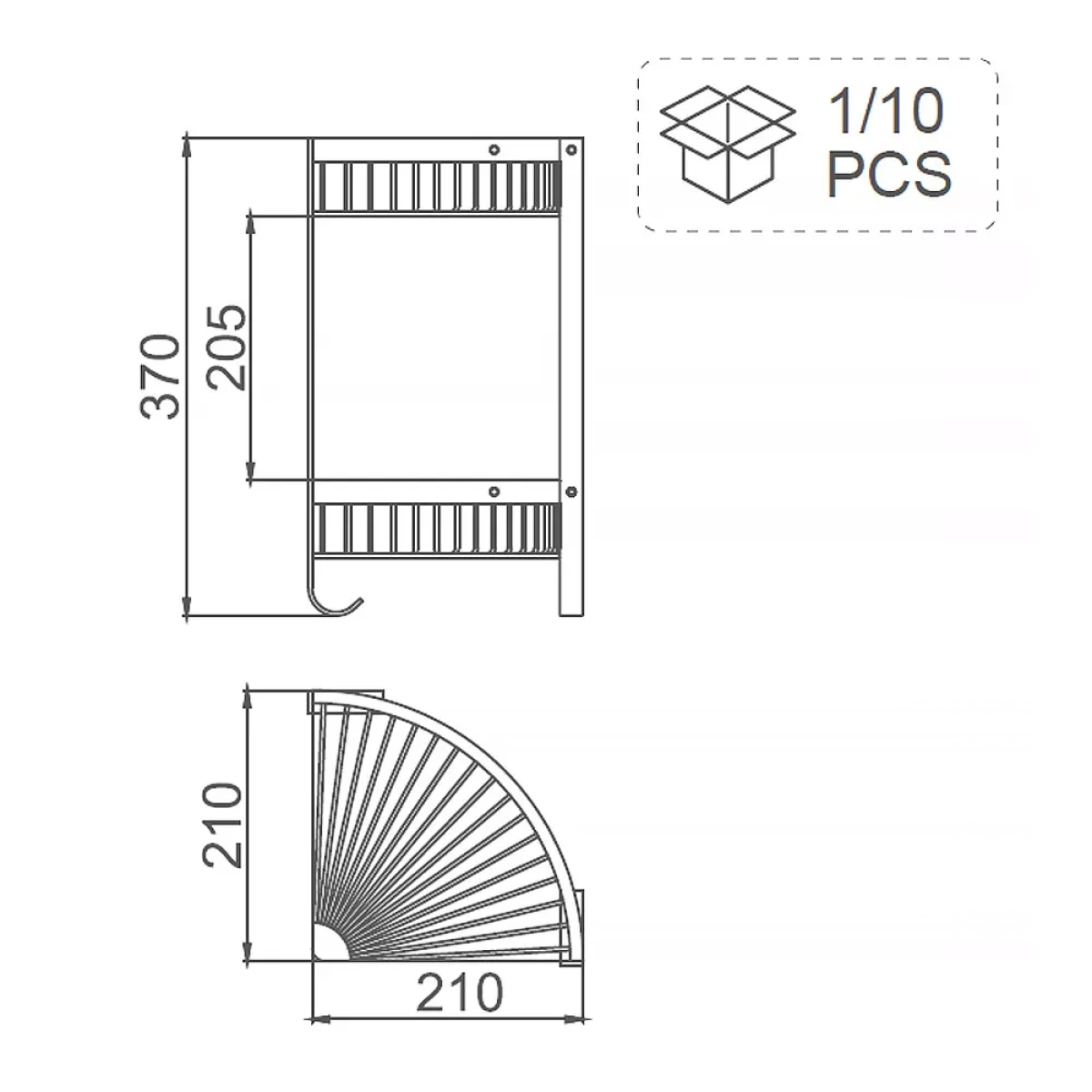 F352-16 полиця кутова подвійна з гачками нерж. сталь (чорна) {10}