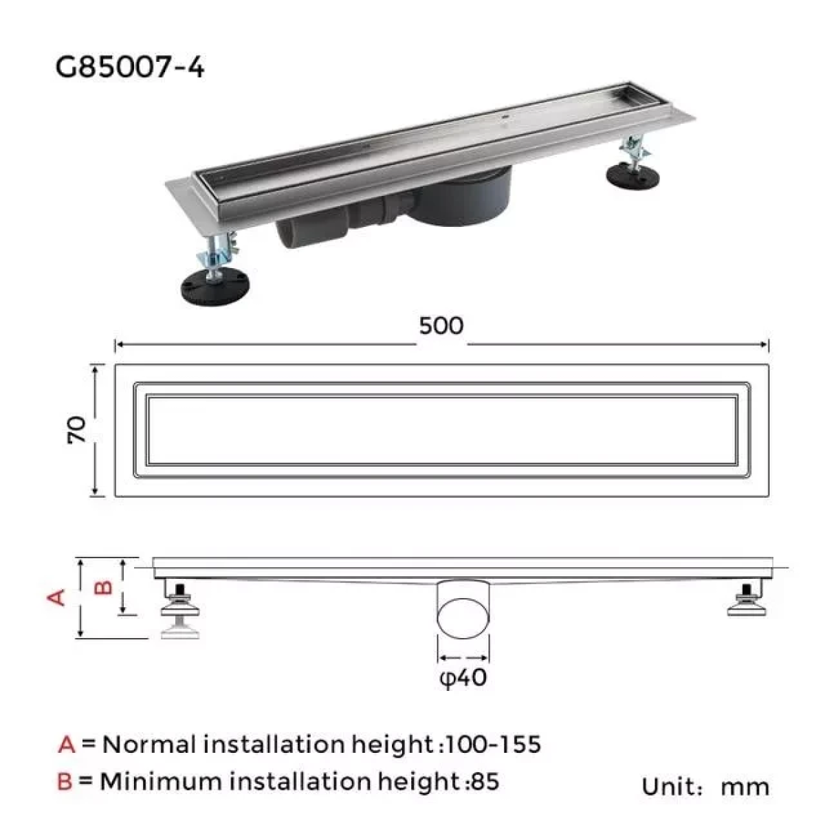 Трап для душу під плитку GAPPO G85007-4, 70х500 мм, нержавіюча сталь