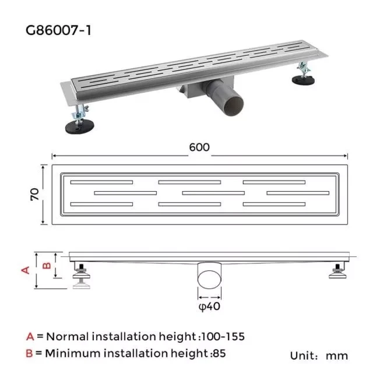 Душовий трап GAPPO G86007-1, 70х600 мм, нержавіюча сталь