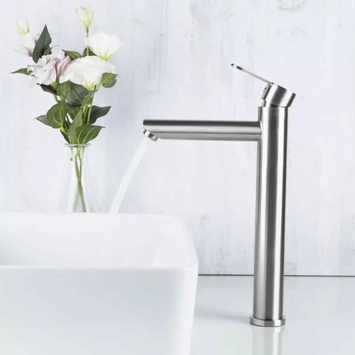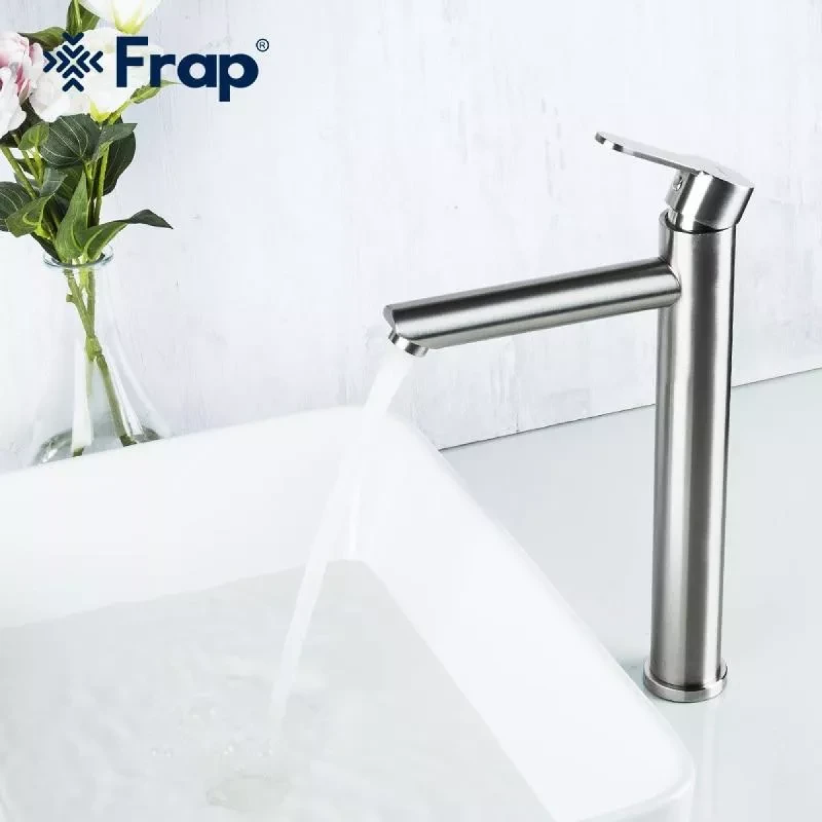 Змішувач для умивальника Frap F10801-2 високий, нержавіюча сталь