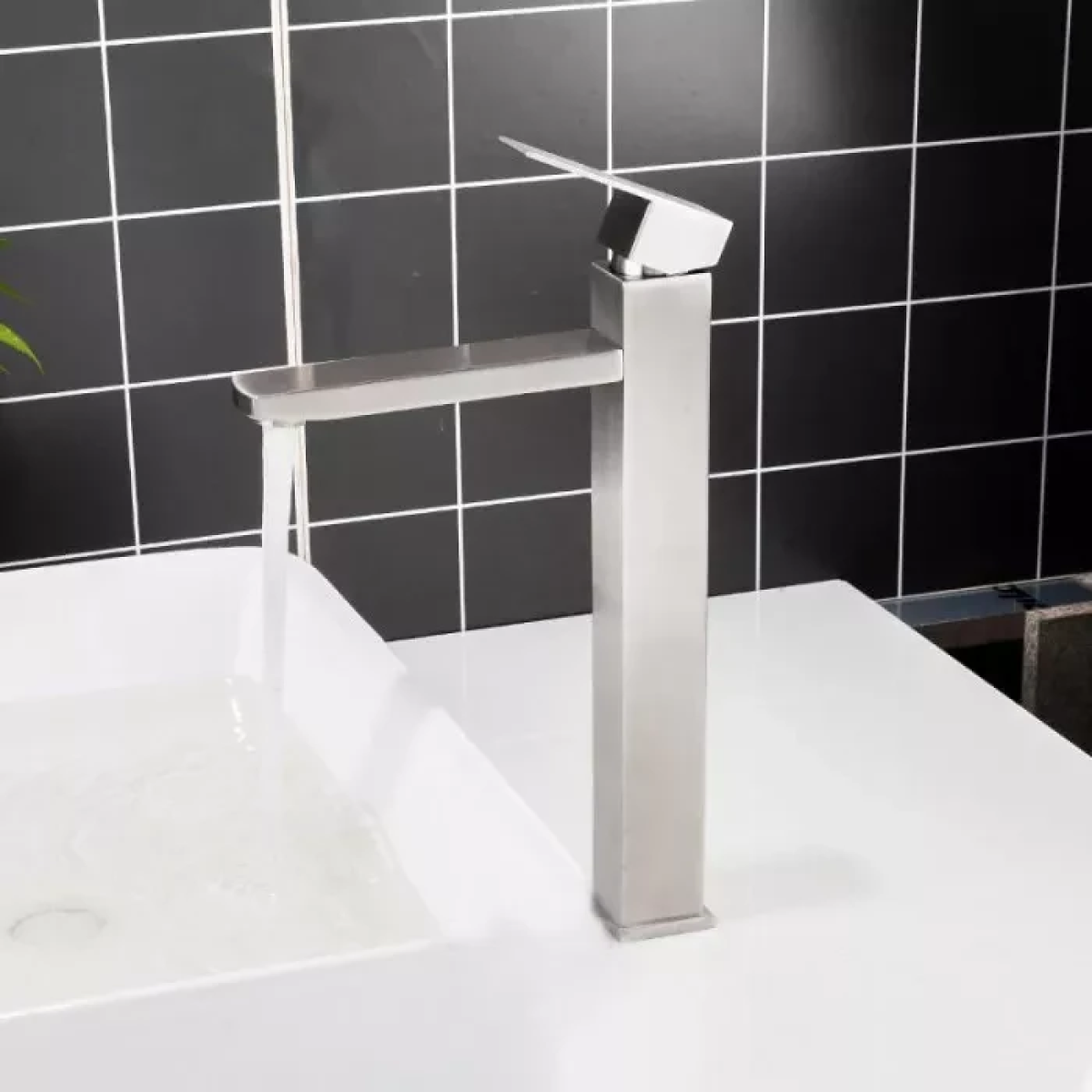 Змішувач для умивальника Frap F10802-2 високий, нержавіюча сталь