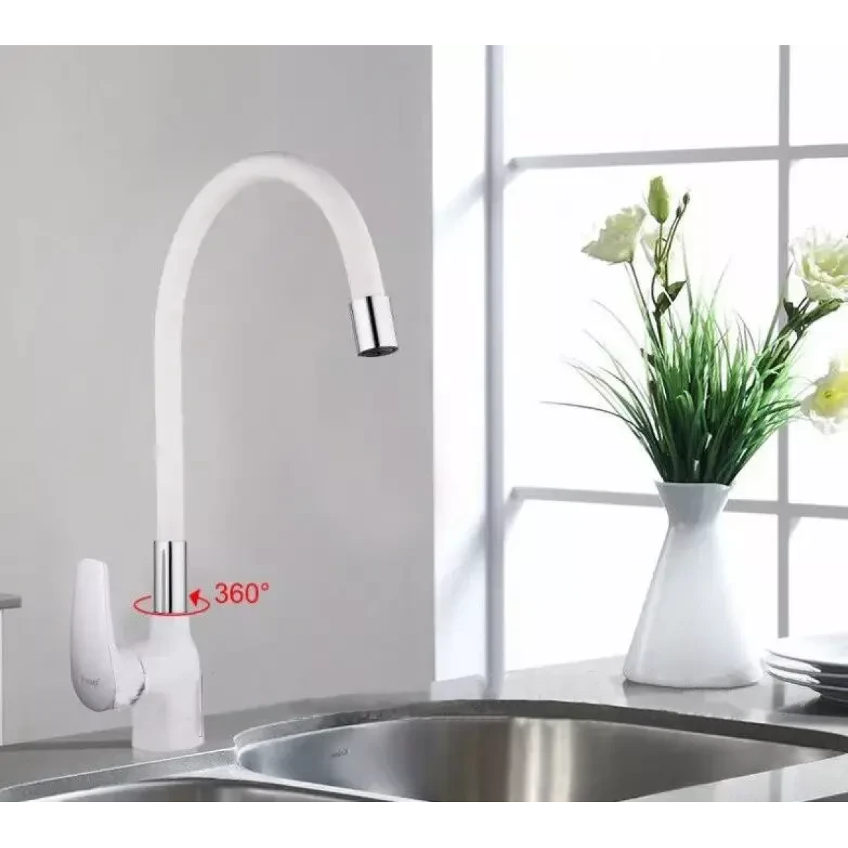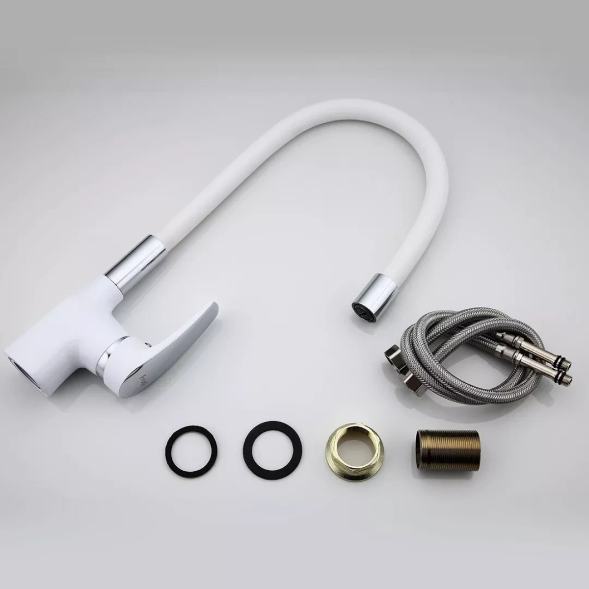 Змішувач для кухні Frap F4453-03 з гнучким виливом, білий/хром