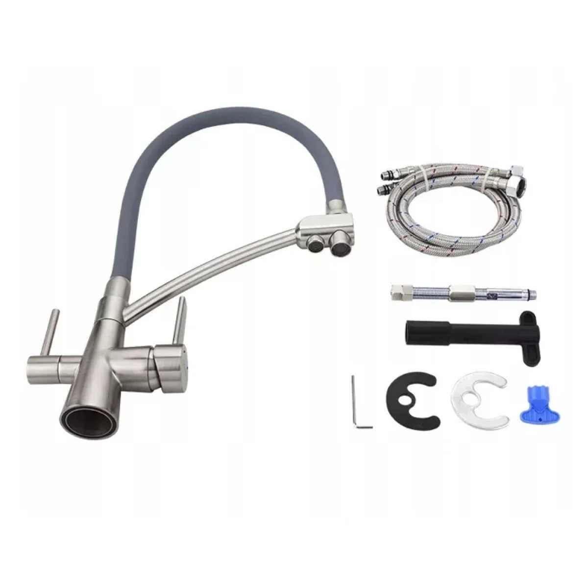 Змішувач для кухні на дві води Frap F4374-5, сатин/сірий