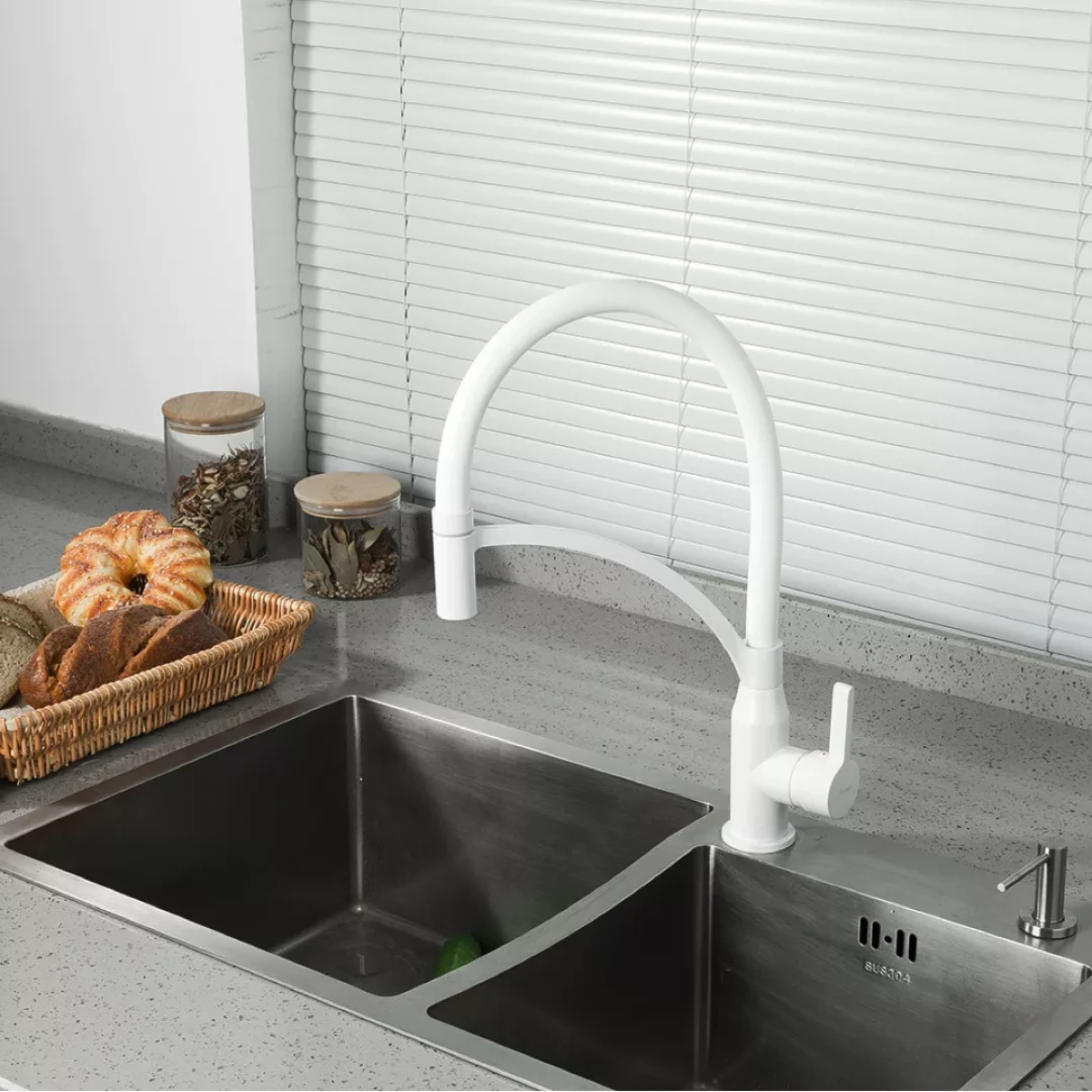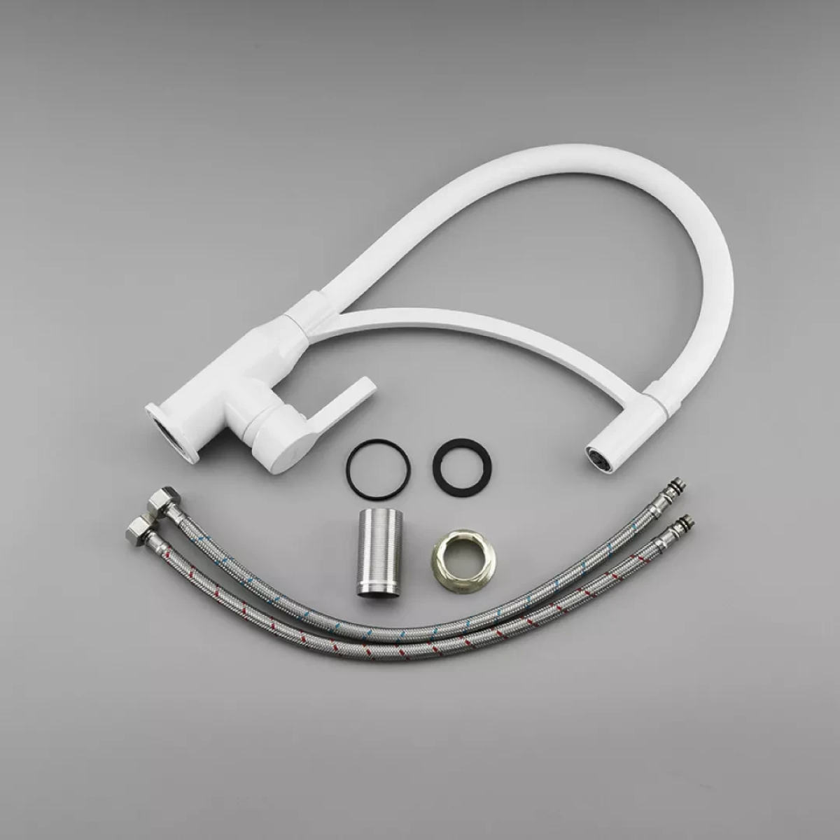 Змішувач для кухні Frap F4552-8 з гнучким виливом, білий