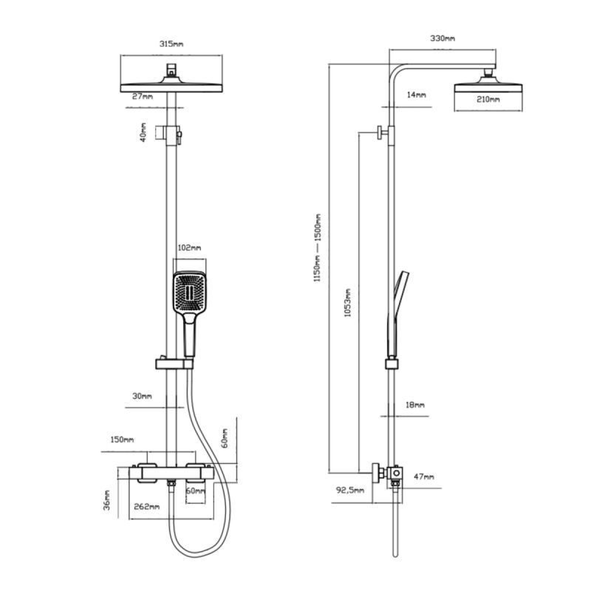 Ручний душ: квадратна. Верхній душ: квадратна |