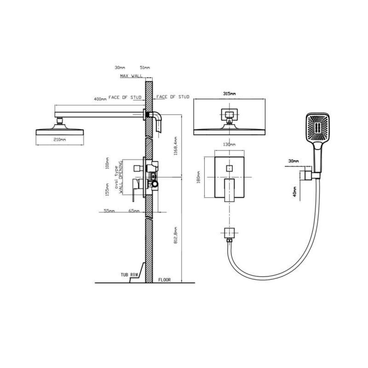 Душова система універсальна Qtap Aquarius прихованого монтажу на два споживача QTAQA64103NGB Black Matt