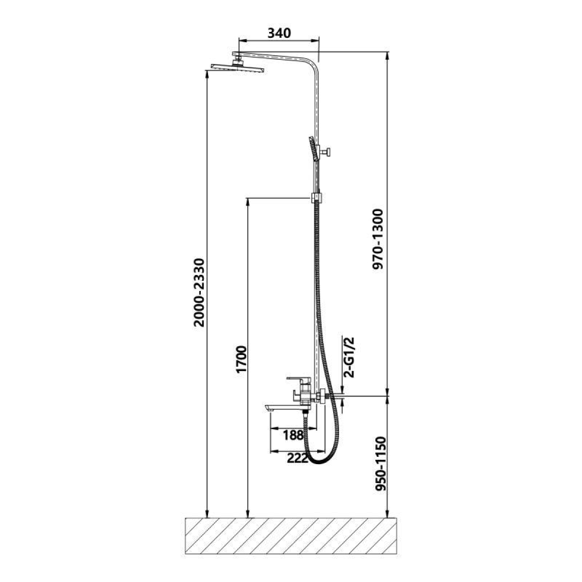 Душова система універсальна Lidz Dozorca 1030 на три споживача (з виливом) (k35) LDDOZ1030CRM45407 Chrome
