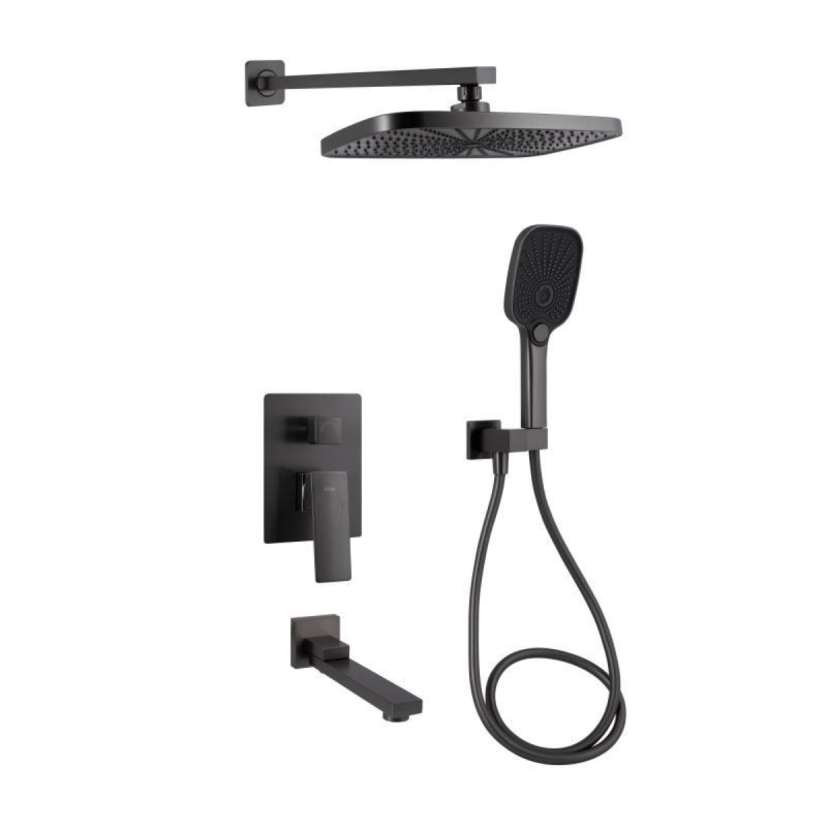 Душова система універсальна Qtap Gemini прихованого монтажу на три споживача QTGEM114GMB45704 Gunmetal Black