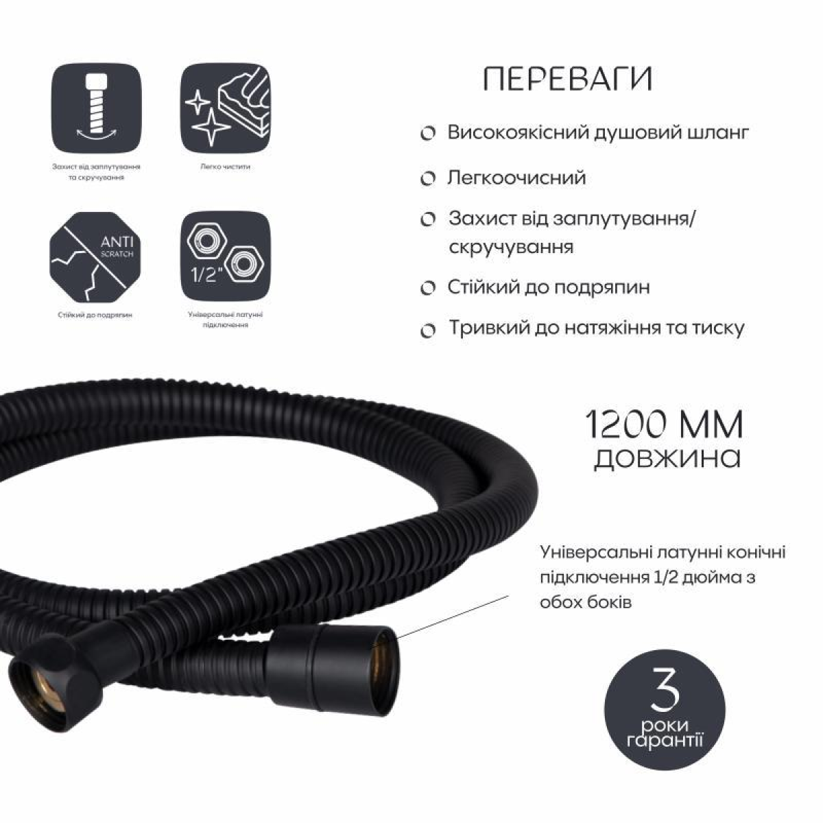Шланг для ручного душу Qtap Hadice 1200 мм QT054BL43073 Black Matt