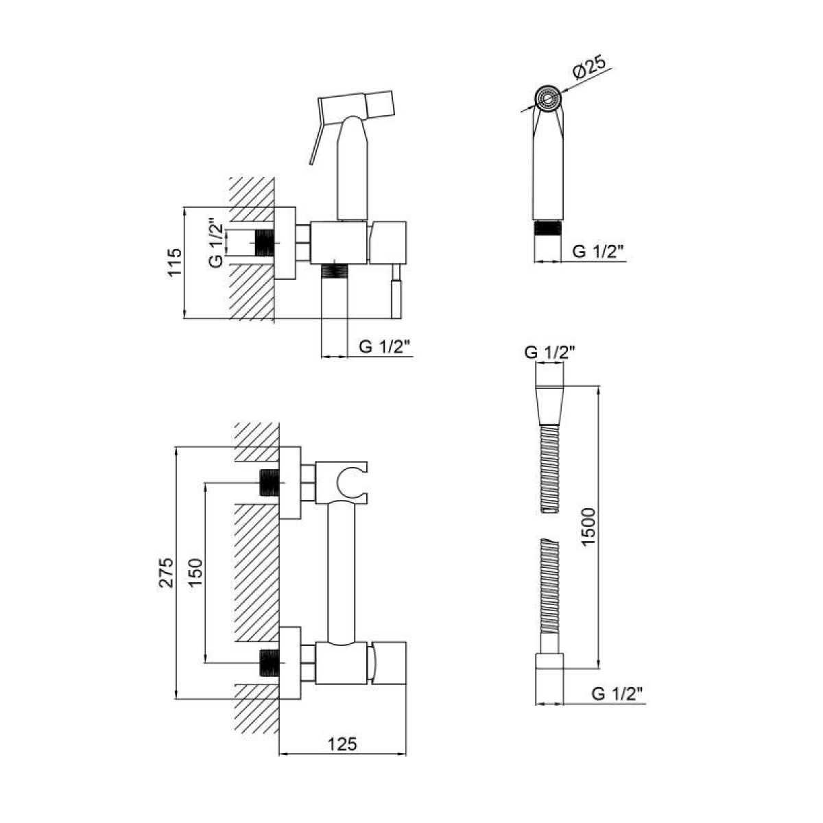 Набір для гігієнічного душу зі змішувачем Lidz Aria 110 округлий LDARI110NKS43393 Nickel