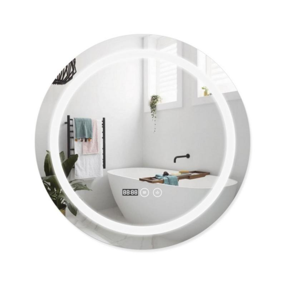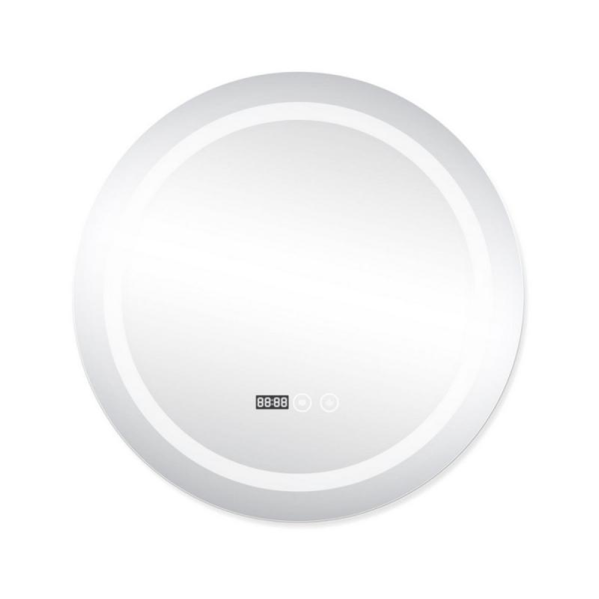 Дзеркало Qtap Mideya з антизапотіванням (DC-F803) 600х600 QT2078F803W укомплектоване світлодіодною LED стрічкою з рівним, насиченим, яскравим свіченням білого кольору. LED стрічка не створює негативного впливу на зір людини. У дзеркалі передбачена функція ANTI-FOG - захист від запотівання. Управління здійснюється двома сенсорними кнопками на передній частині дзеркала. У дзеркало вмонтовано годинник та індикатор температури навколишнього середовища в градусах Цельсія.
