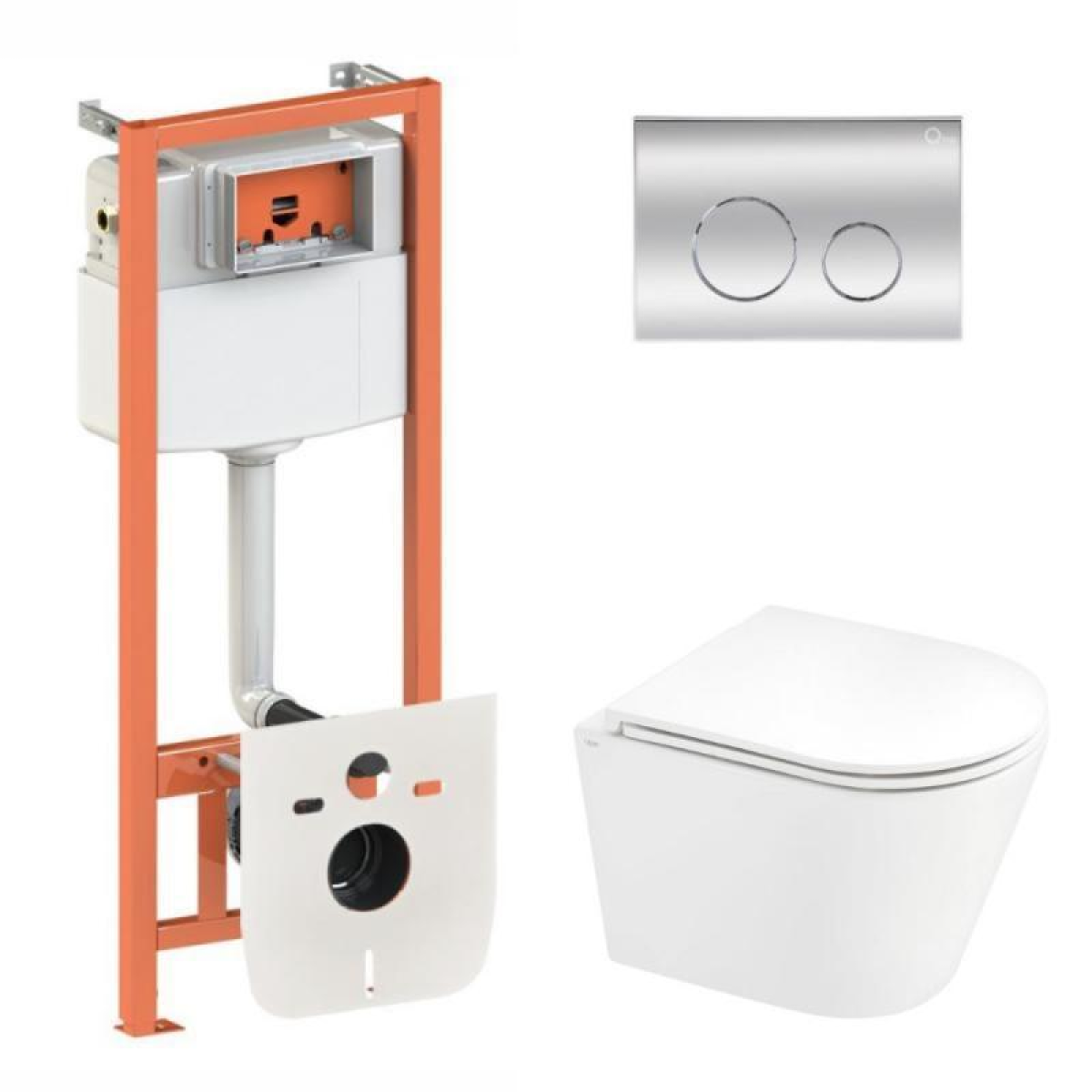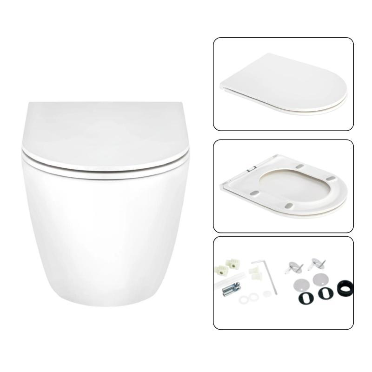 Унітаз, сидіння, кріплення, інсталяція, звукоізоляційна прокладка, комплект підведення води, 2 болти-тримачі для унітазу, вихідна труба для унітазу, панель змиву. |