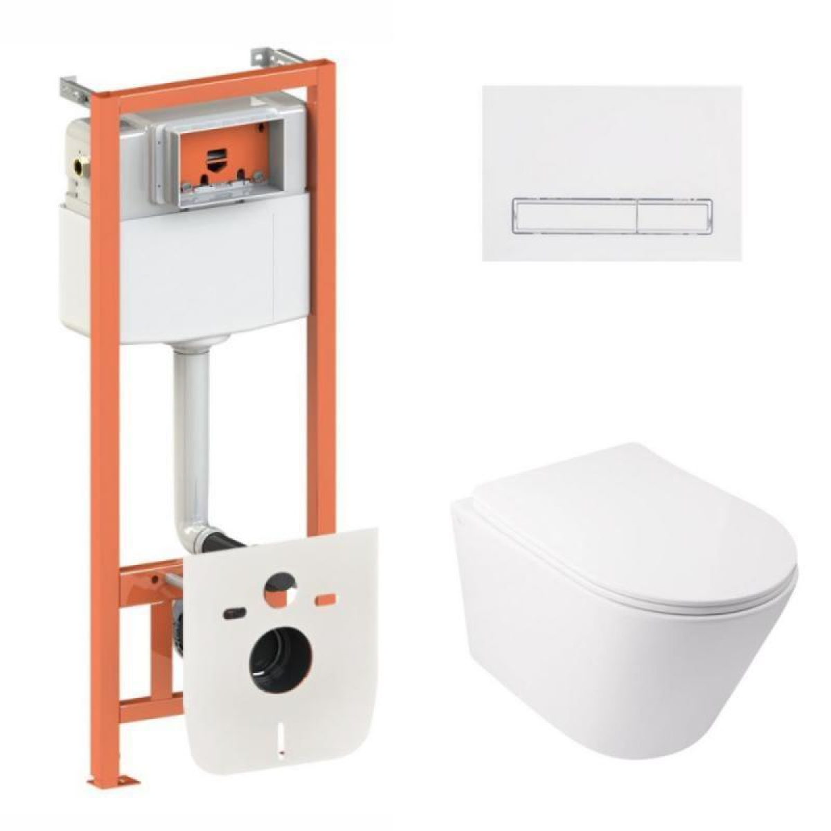 Унітаз, сидіння, кріплення, інсталяція, звукоізоляційна прокладка, комплект підведення води, 2 болти-тримачі для унітазу, вихідна труба для унітазу, панель змиву. |