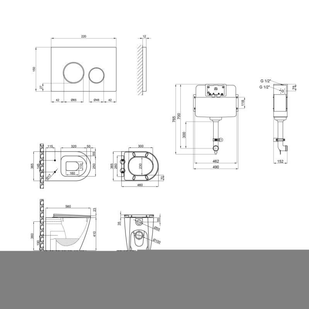 Вага брутто, кг 8,25 – інсталяційний бачок; 0,8 – панель змиву; 37 – унітаз