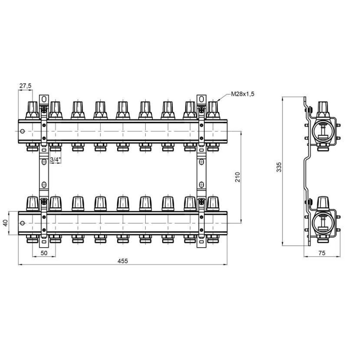 Колектор Icma 1“ 9 виходів, без витратоміра №K005