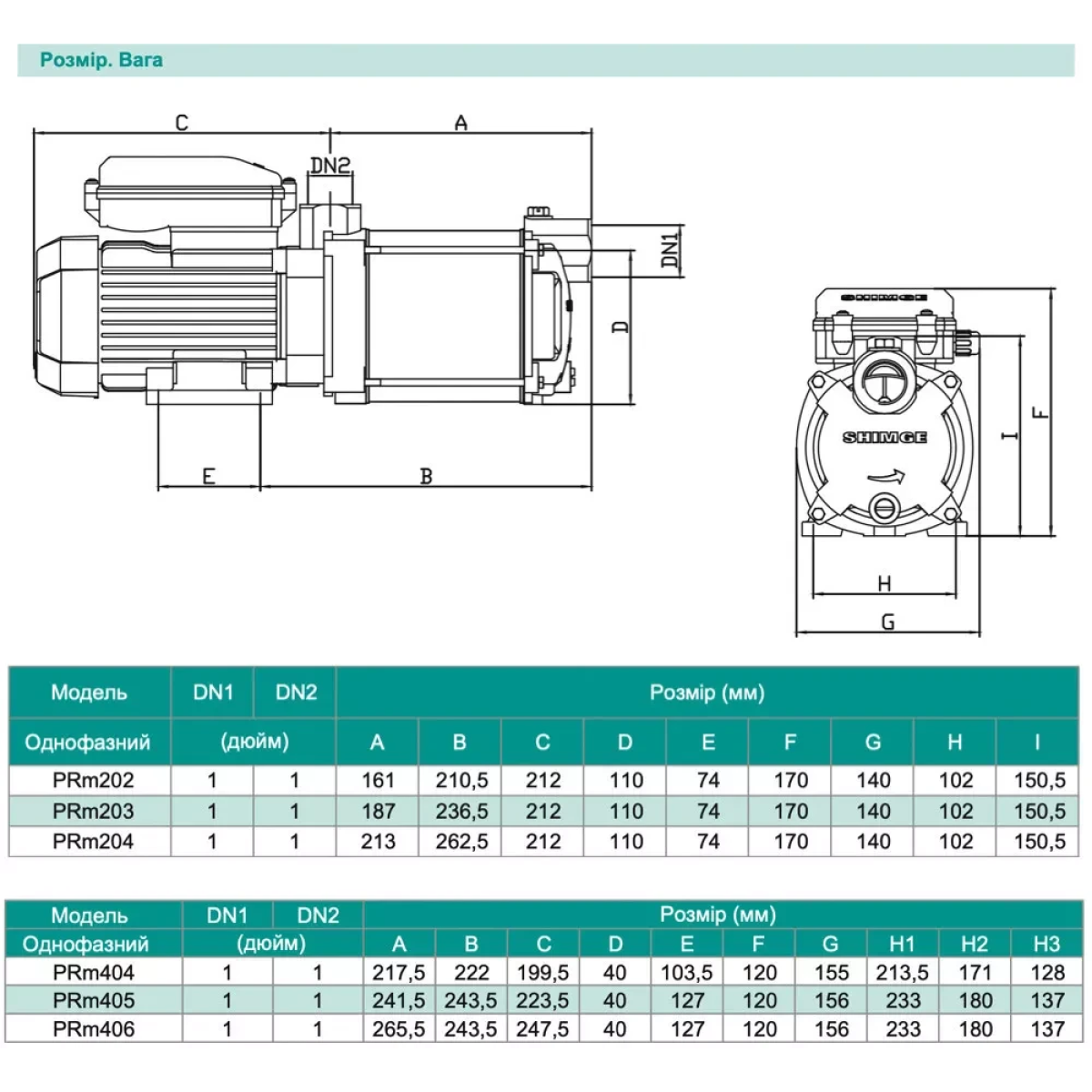 Відцентровий насос SHIMGE PRm405, 1.1 кВт, Нmax=57 м, Qmax=108л/хв