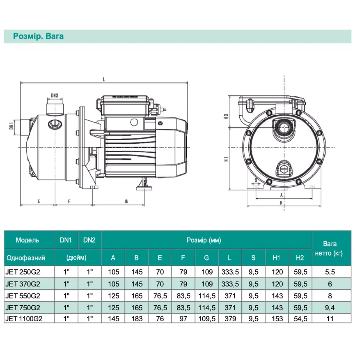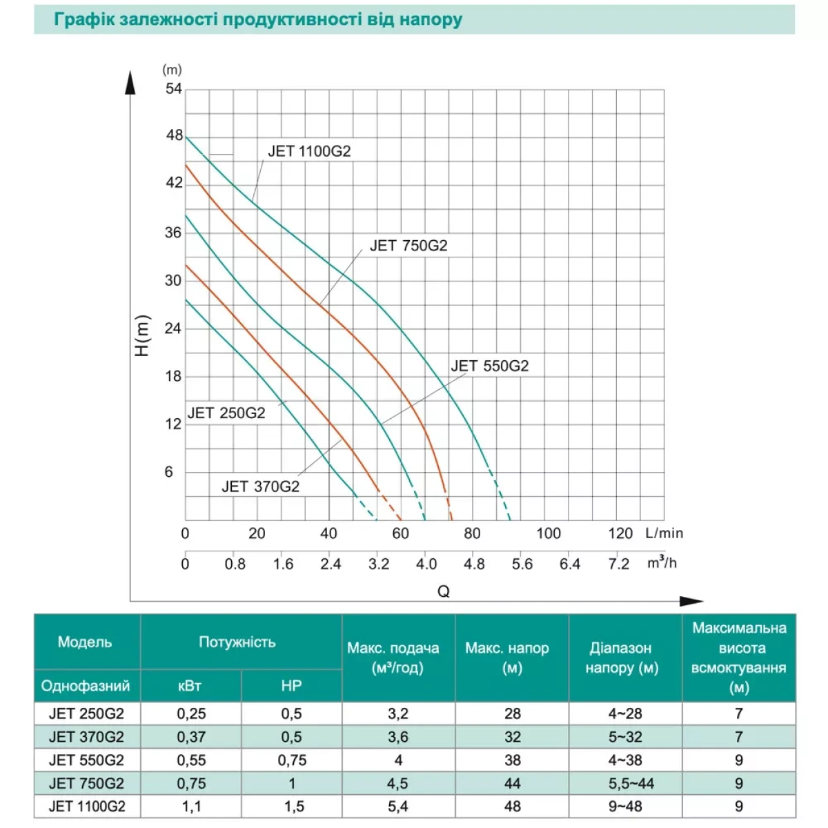 Відцентровий насос SHIMGE JET370G2, 0.37кВт, Нmax=32 м, Qmax=60л/хв