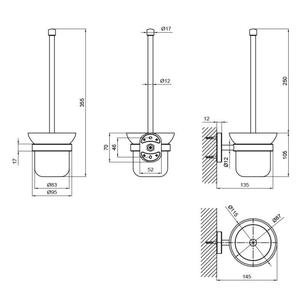 Йоржик для туалету Lidz (CRG) 114.05.01 кріпиться на стіні, не піддається корозії. Колба під йоржик знімна, завдяки чому догляд за нею буде простим і легким. У виробах використовуються кільця ущільнювачів (прокладки), необхідні для щільного з“єднання металу та кераміки, які також перешкоджають виникненню шуму в результаті зіткнення частин виробу.