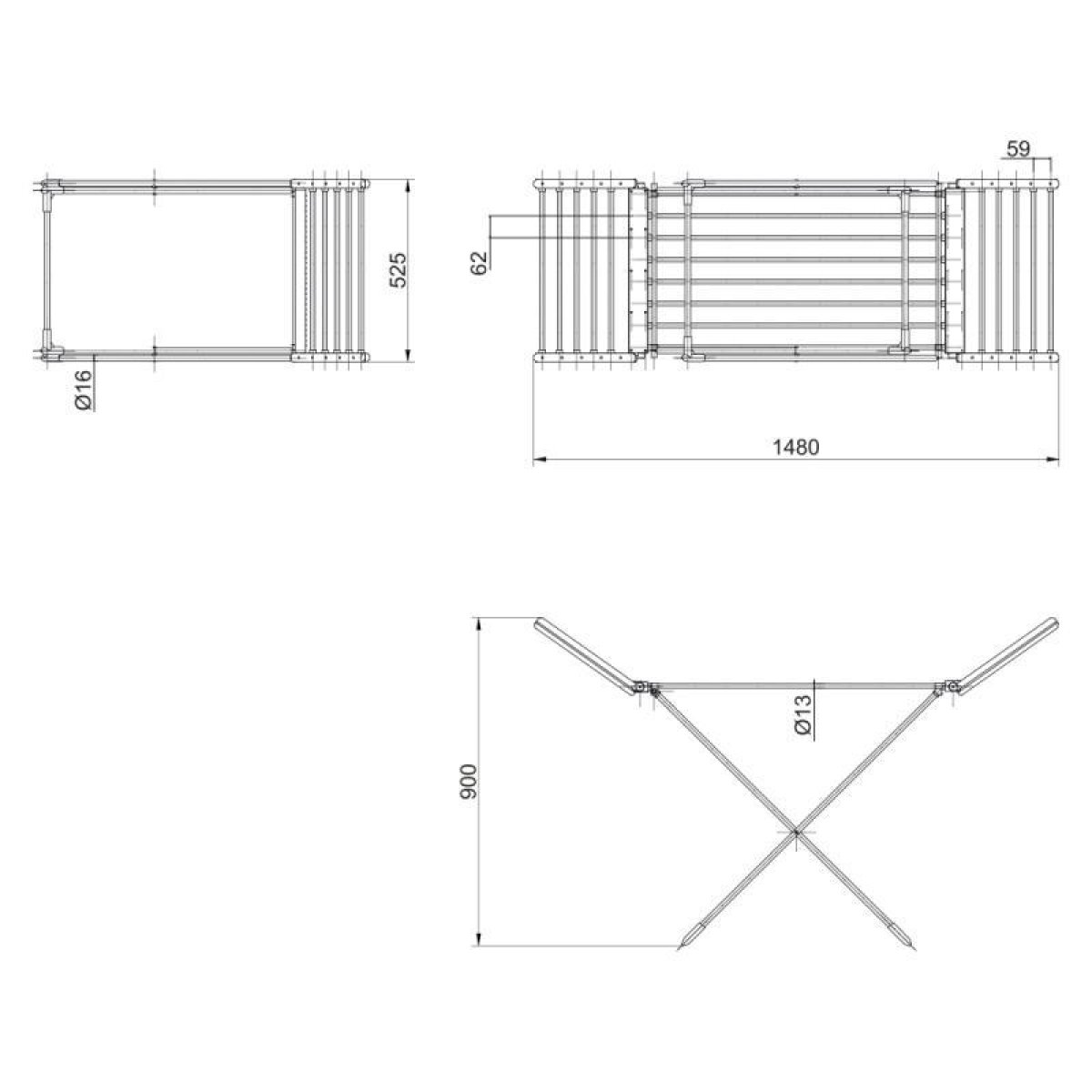 Габаритні розміри виробу (ШхГхВ), мм 1480х525х900