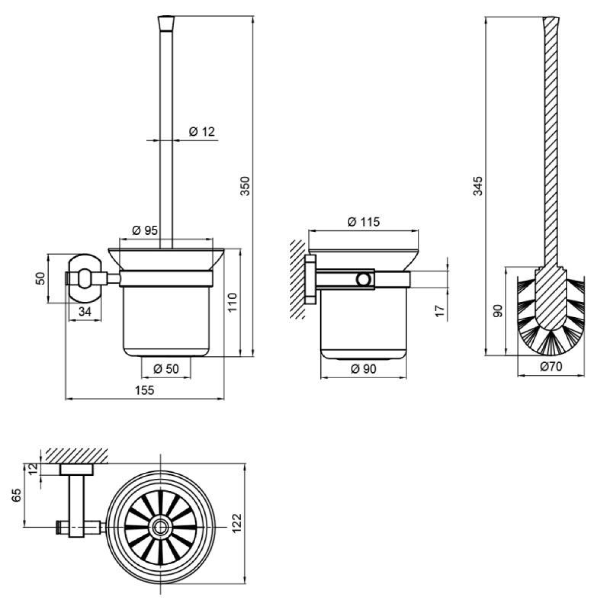 Йоржик для унітаза Qtap Liberty BLM 1157 кріпиться на стіні на необхідній висоті. Прихований монтаж дозволяє зберегти обробку санвузла. Латунна ручка міцна, не гнеться, зручна у використанні. Колба виконана з матового скла, вставляється в латунний тримач. Щетина щітки з міцного пластику.