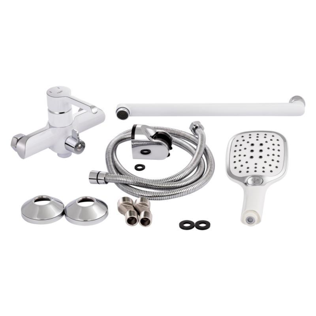 Змішувач для ванни Qtap Grand з поворотним виливом (з душовим гарнітуром) QTGRAWCR005 Chrome/White