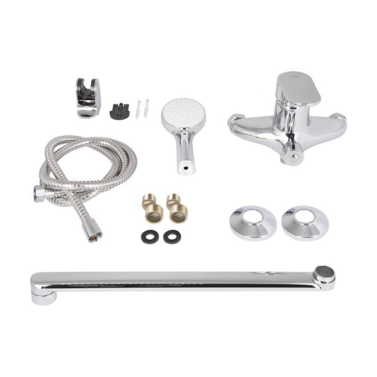 Комплектация Змішувач, лійка для ручного душу, душовий шланг, тримач для ручного душу, кріплення.