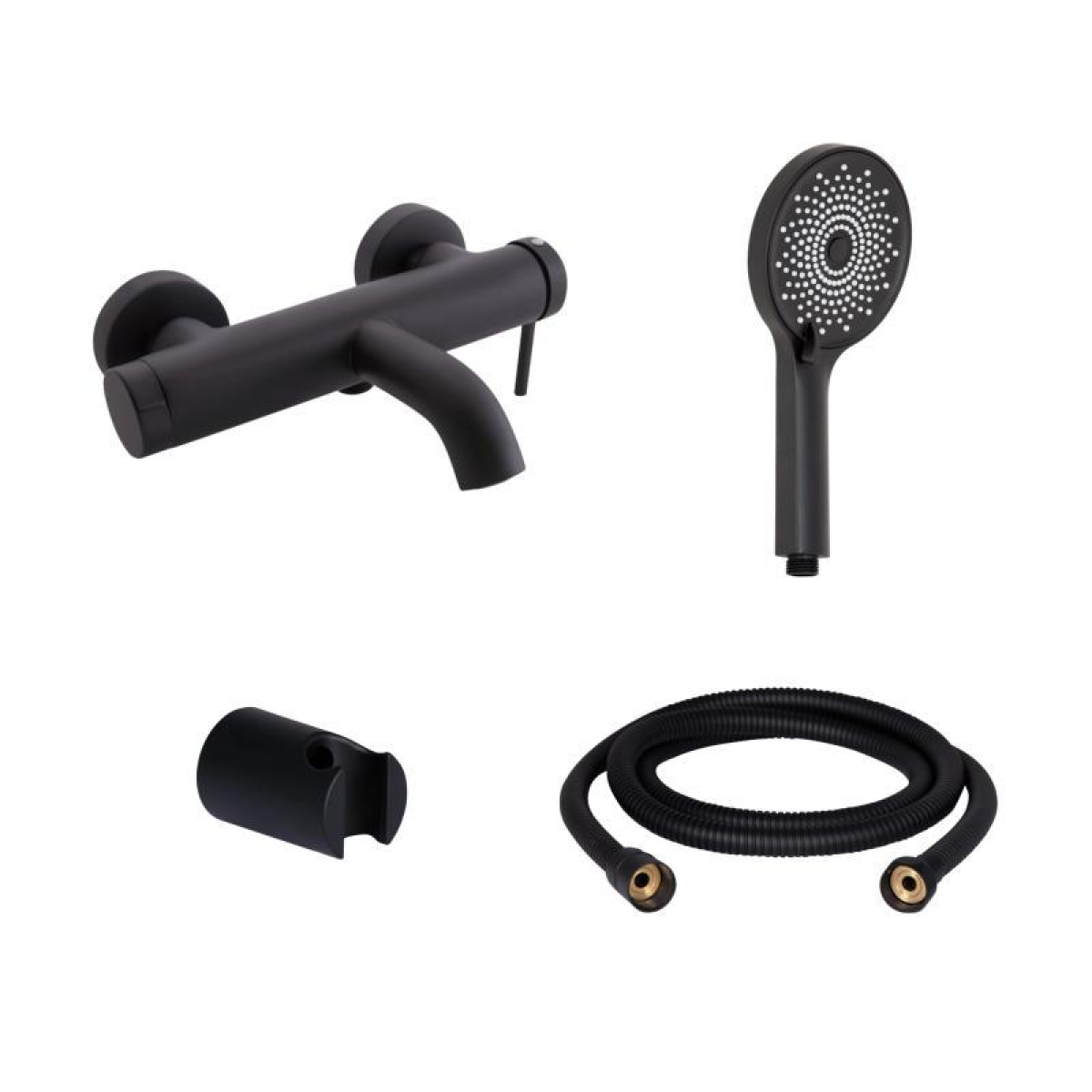Комплект для ванної кімнати Qtap Robin Black: Змішувач QTROB3060102B + Тримач QT829910842854OB + Шланг