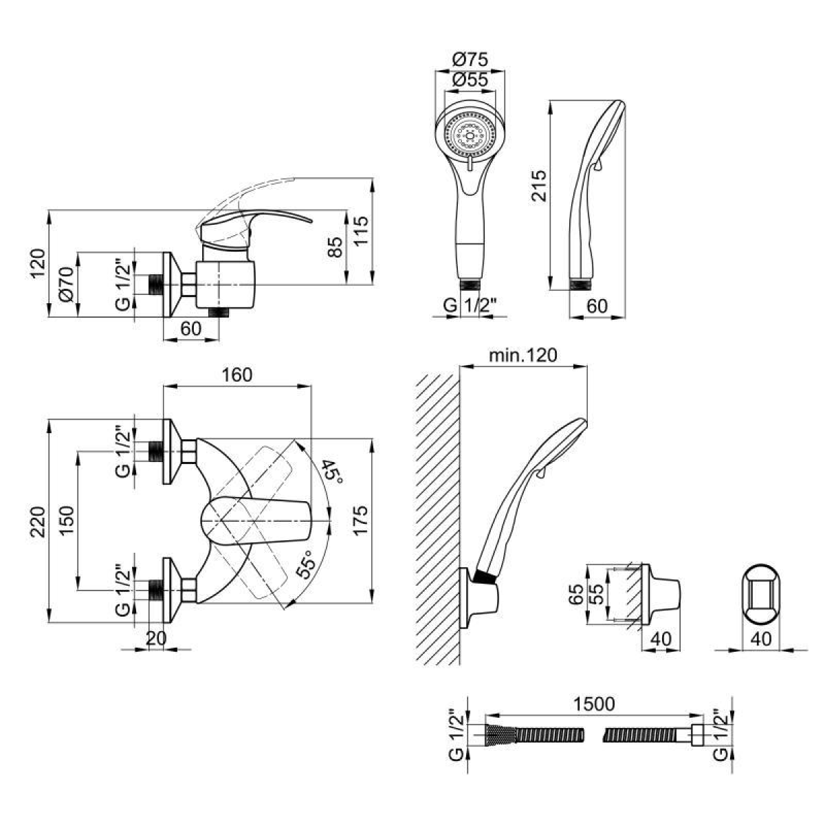 Змішувач для душу Lidz Mars 010 (з душовим гарнітуром) (k40) LDMAR010CRM34892 Chrome