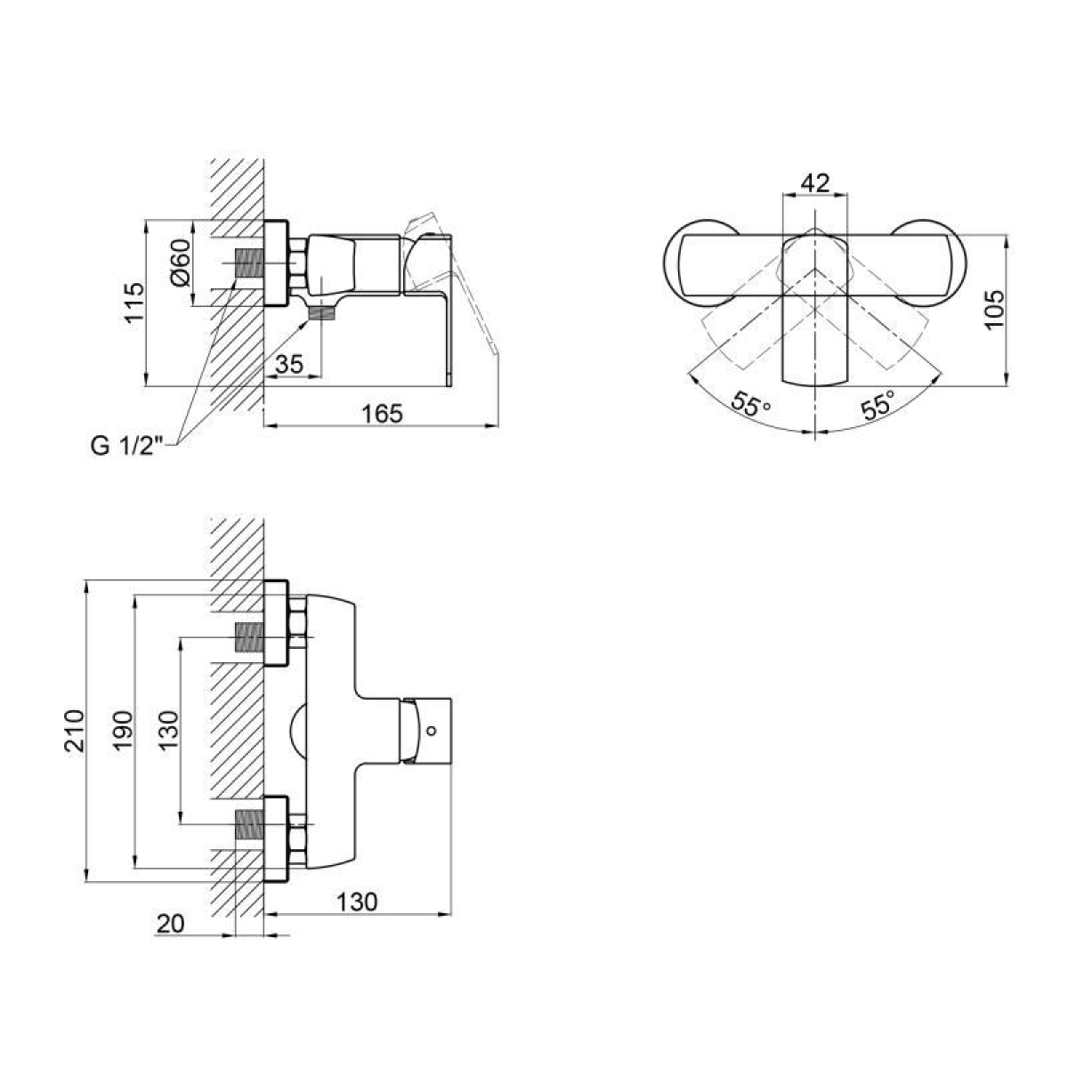 Змішувач для душу Qtap Lipno QTLIPNO4023101G Graphite