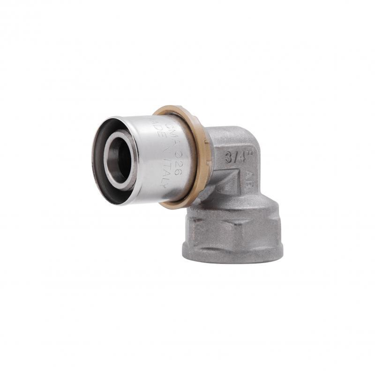 Прес-фітинг кут ICMA Sempiter Арт. 405 3/4“х26 для металопластикової труби спроектований для застосування в системах водопостачання, опалення, і охолодження. Прес-фітинг Sempiter з радіальним пресуванням і з внутрішнім різьбленням дуже простий, і зручний в монтажі, і спільно з металопластиковою трубою створює надійну, швидку і недорогу систему. Прес на діаметр металопластикової труби 26 мм стискає гільзу з нержавіючої сталі, яка надійно фіксує трубу на фітингу.