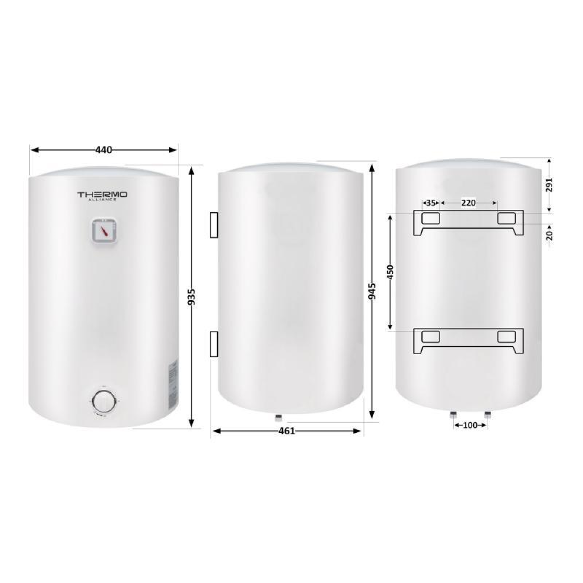 Водонагрівач електричний Thermo Alliance 100 л універсальний, мокрий ТЕН 1,5 кВт D100VH15Q3
