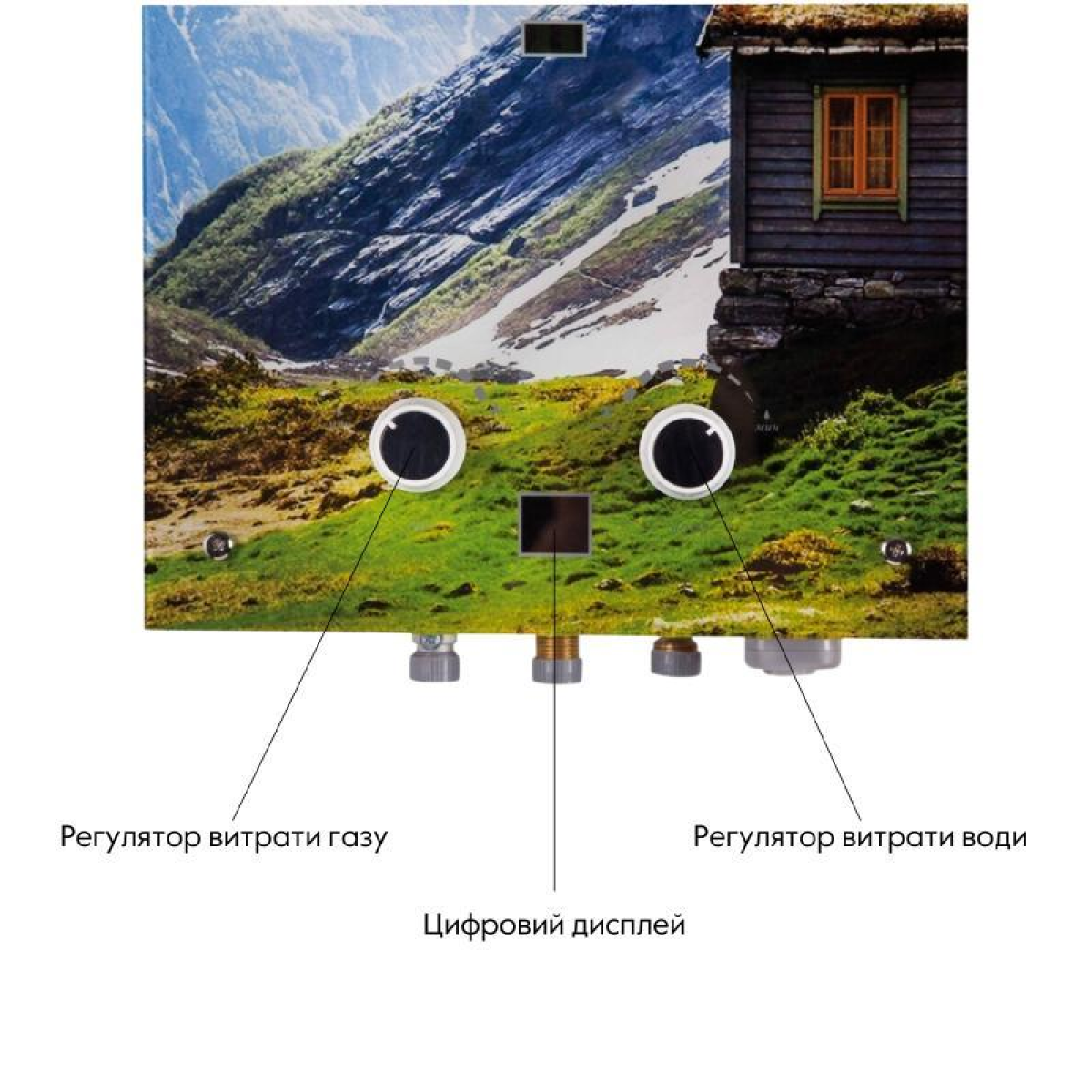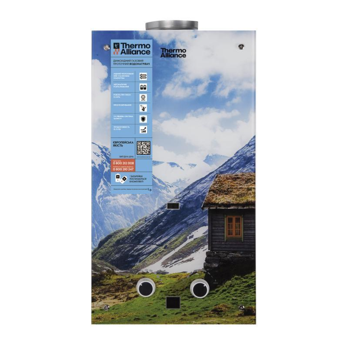Колонка газова димохідна Thermo Alliance JSD20-10GC 10 л панель скляна з малюнком гори