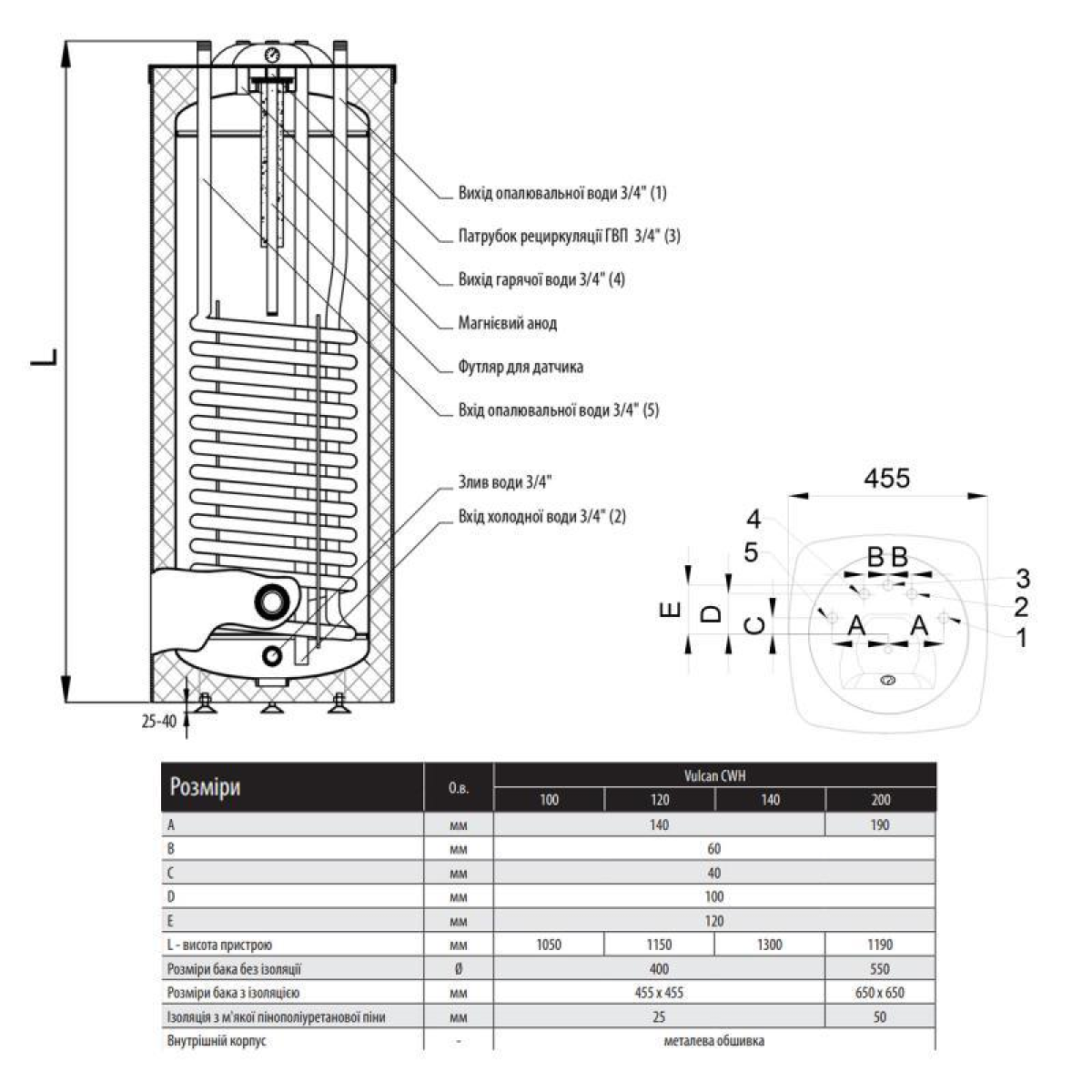 Thermo Alliance Vulcan CWH 10046 12S F – це водонагрівач підлогового монтажу непрямого нагріву у стильному прямокутному дизайні Square Jacket Design та шириною всього 45,5 см, завдяки чому легко вміщується навіть у вузьких нішах. Всі підключення розташовані у верхній кришці водонагрівача, що дозволяє компактно розмістити водонагрівач під опалювальним котлом із мінімальною кількістю гідравлічних з“єднань. Джерелом тепла в теплообміннику Thermo Alliance Vulcan є спіральний змійовик, який живиться від центрального опалення котла або каміна. За бажанням водонагрівач також може працювати від електронагрівача (опція ТЕН 1 1/4“). Конструкція водонагрівача також має на увазі циркуляційний контур ГВП, що дозволяє підключати зовнішній циркуляційний насос. Комфортну роботу водонагрівача забезпечує спіральний змійовик зі збільшеною площею поверхні.
