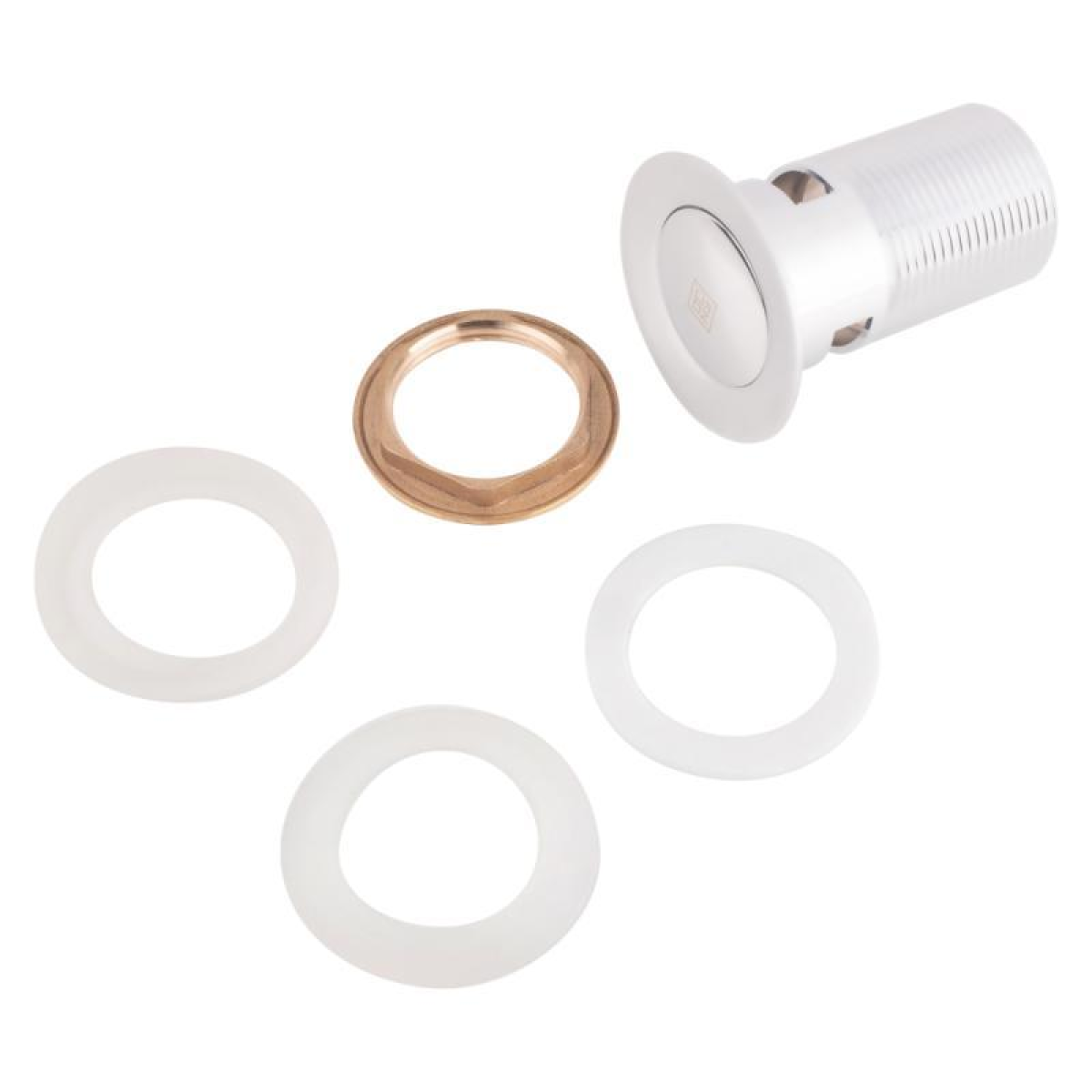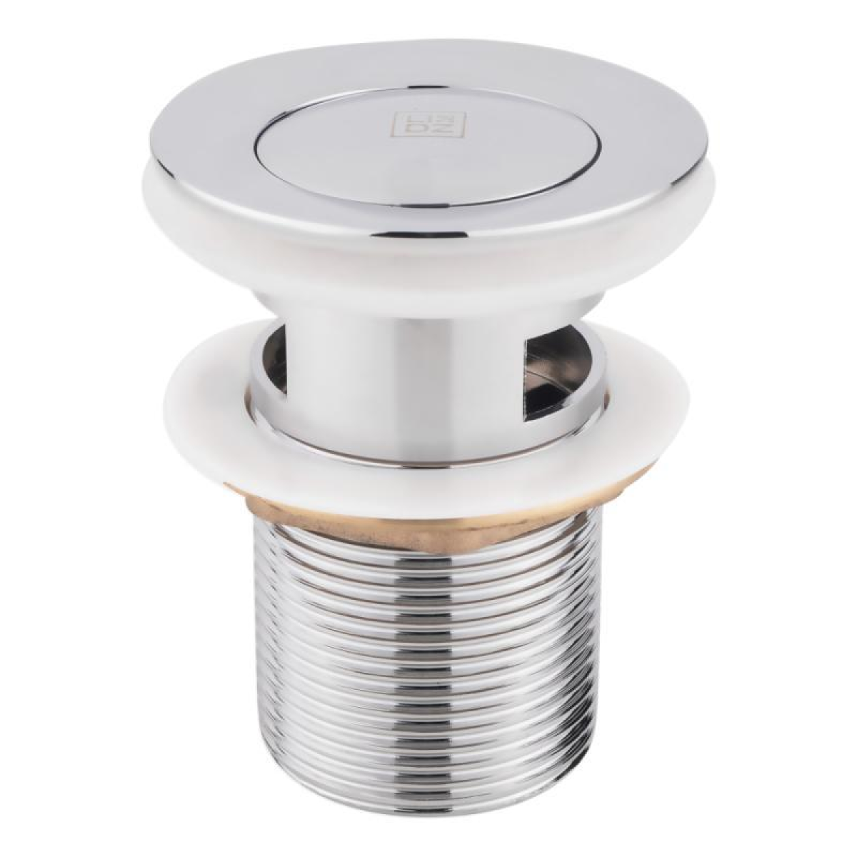 Донний клапан для раковини Lidz (CRM) 47 00 004 00 з переливом виконаний з латуні в хромованому кольорі, що дає можливість поєднувати його з раковинами з таким же покриттям. Виріб дозволить перекрити зливний отвір в разі потреби і використовувати раковину як таз, а наявність переливу вбереже вас від потопу, якщо ви ненадовго відволіклися під час набирання води. Клапан монтується не більше 5-ти хвилин і керується натисненням на кришку у вигляді круглої кнопки. З“єднання універсальне.