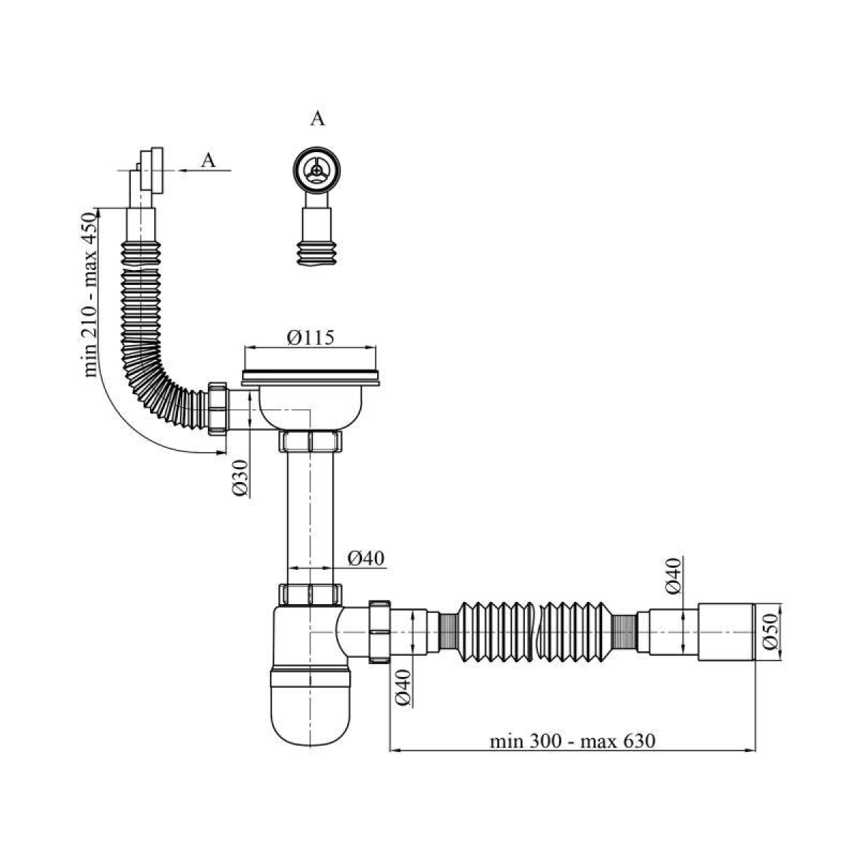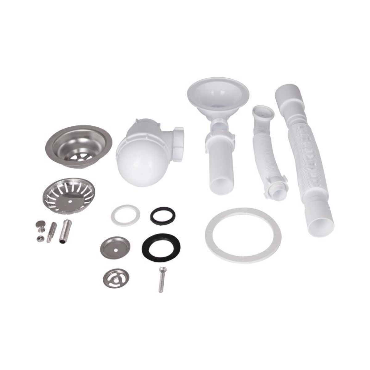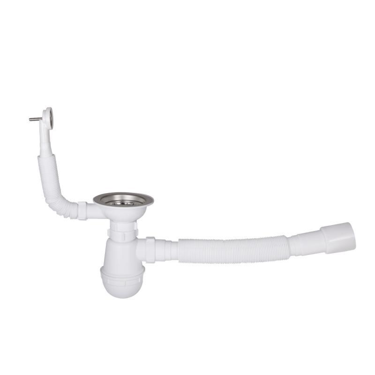 Сифон для кухонної мийки Lidz (WHI) LK14, колбовий з круглим переливом (вихід 50 мм)
