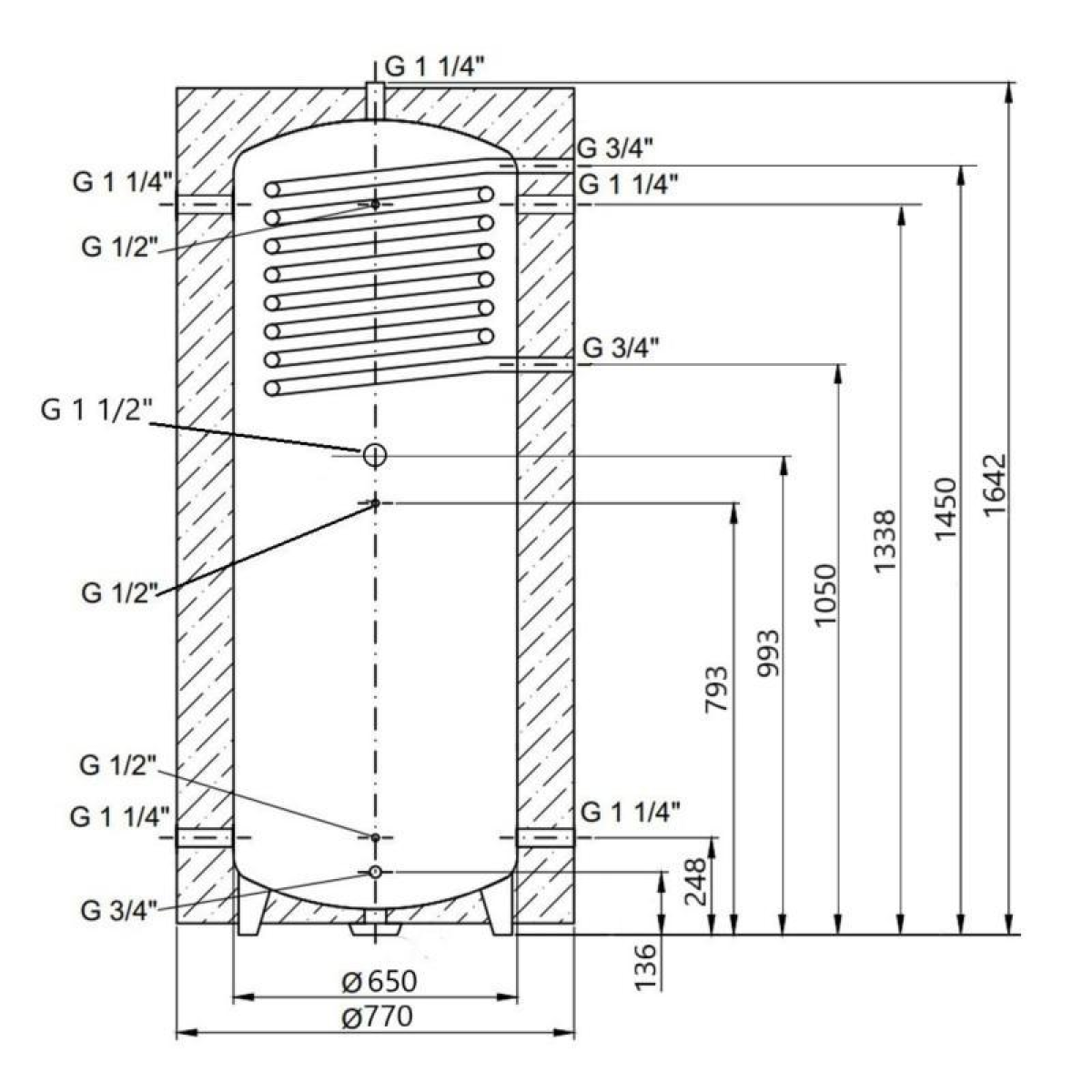 Теплоакумулятор Thermo Alliance TAI-10 500 з теплообмінником 1,4 кв. м з ізоляцією 60 мм