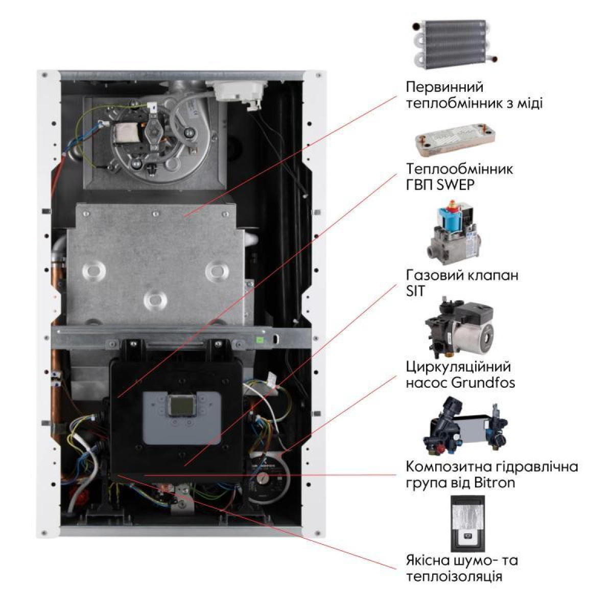 Газовий котел, комплект кріплення, інструкція, гарантійний талон |