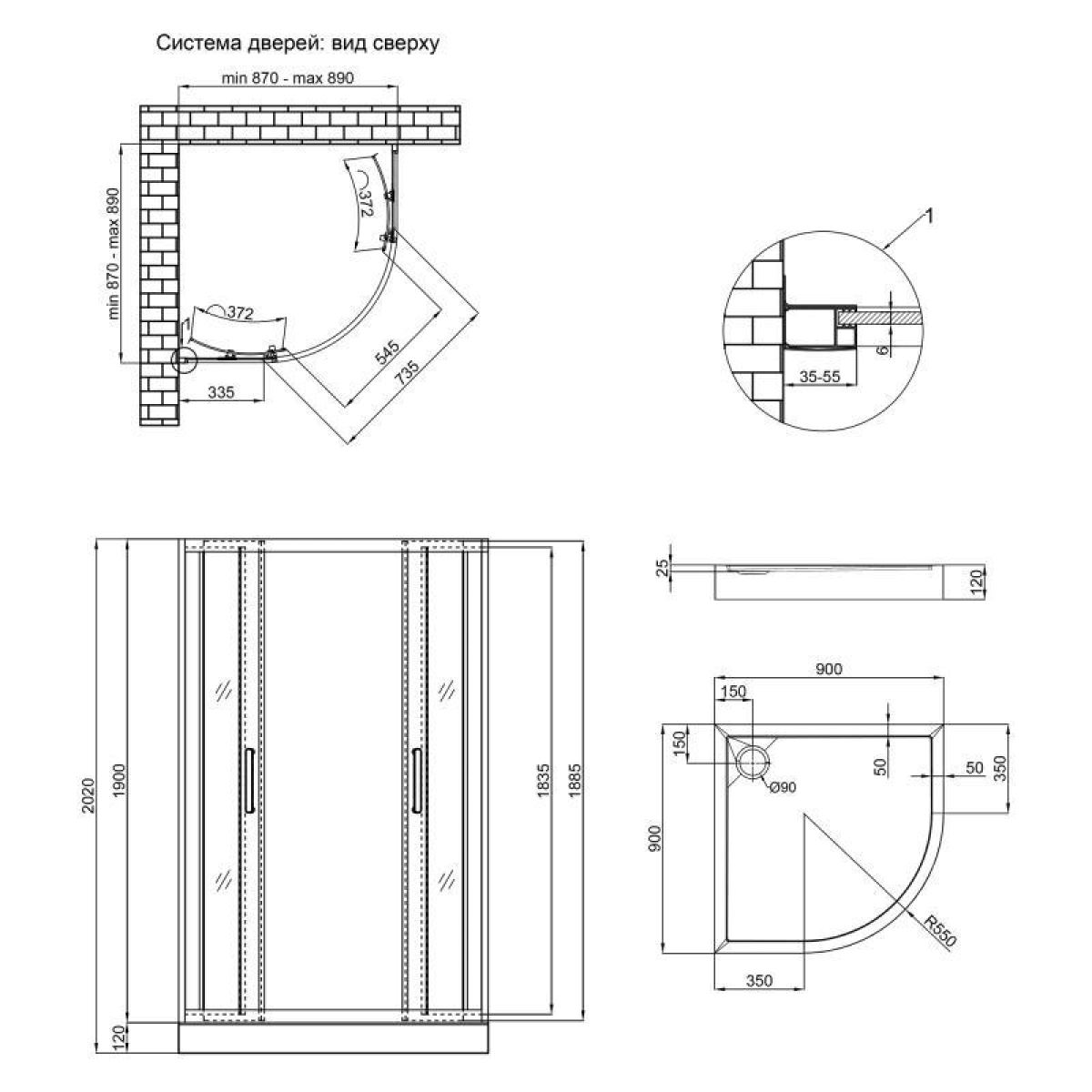 Набір Qtap душова кабіна Taurus CRM1099AC6 Clear 2020x900x900 мм + піддон Robin 309912C 90x90x12 см з сифоном